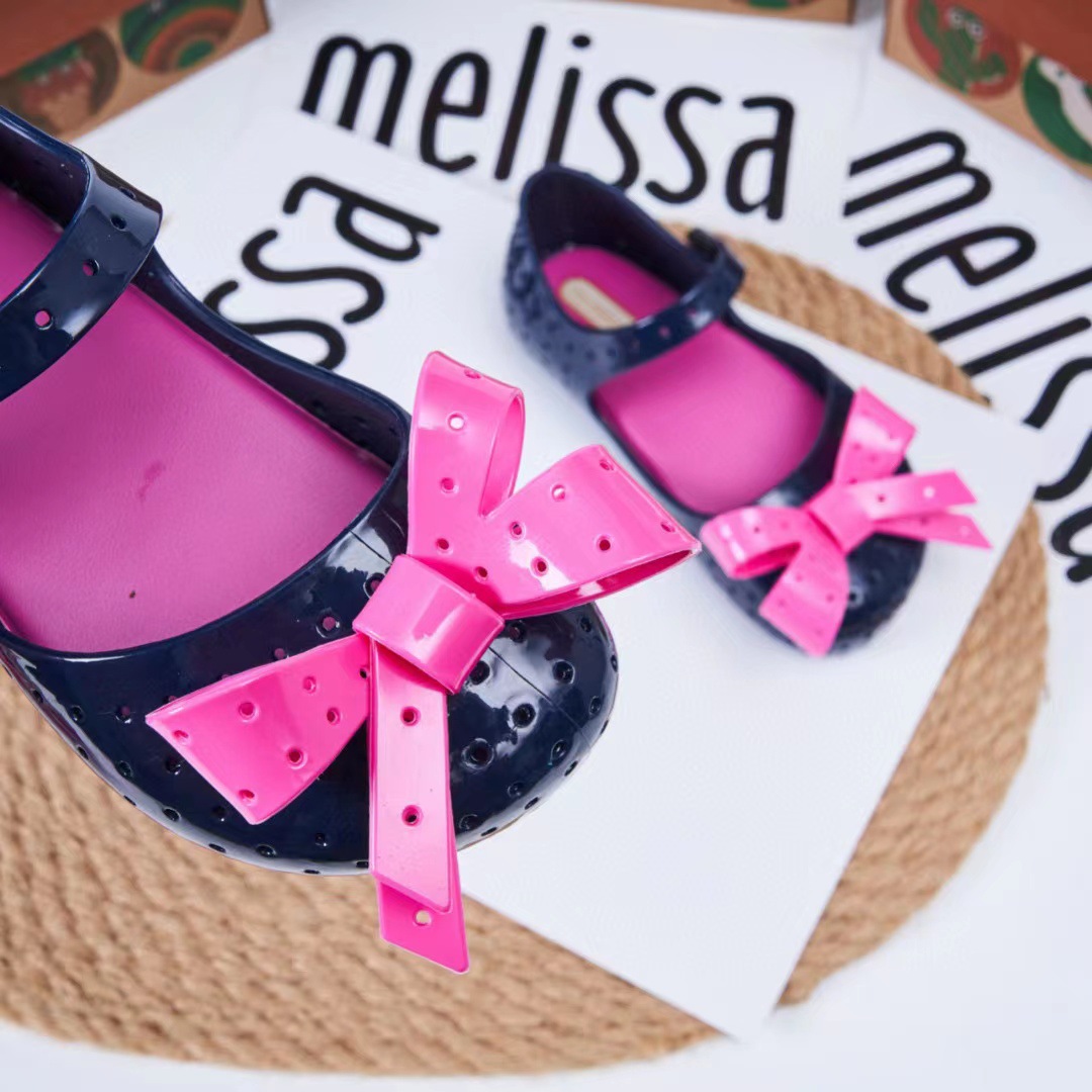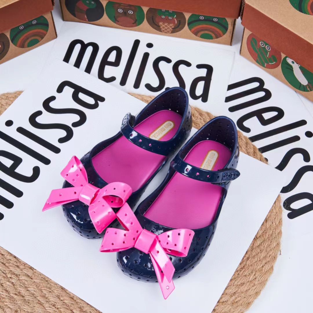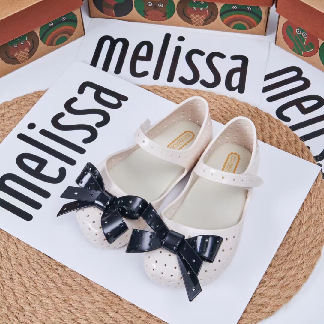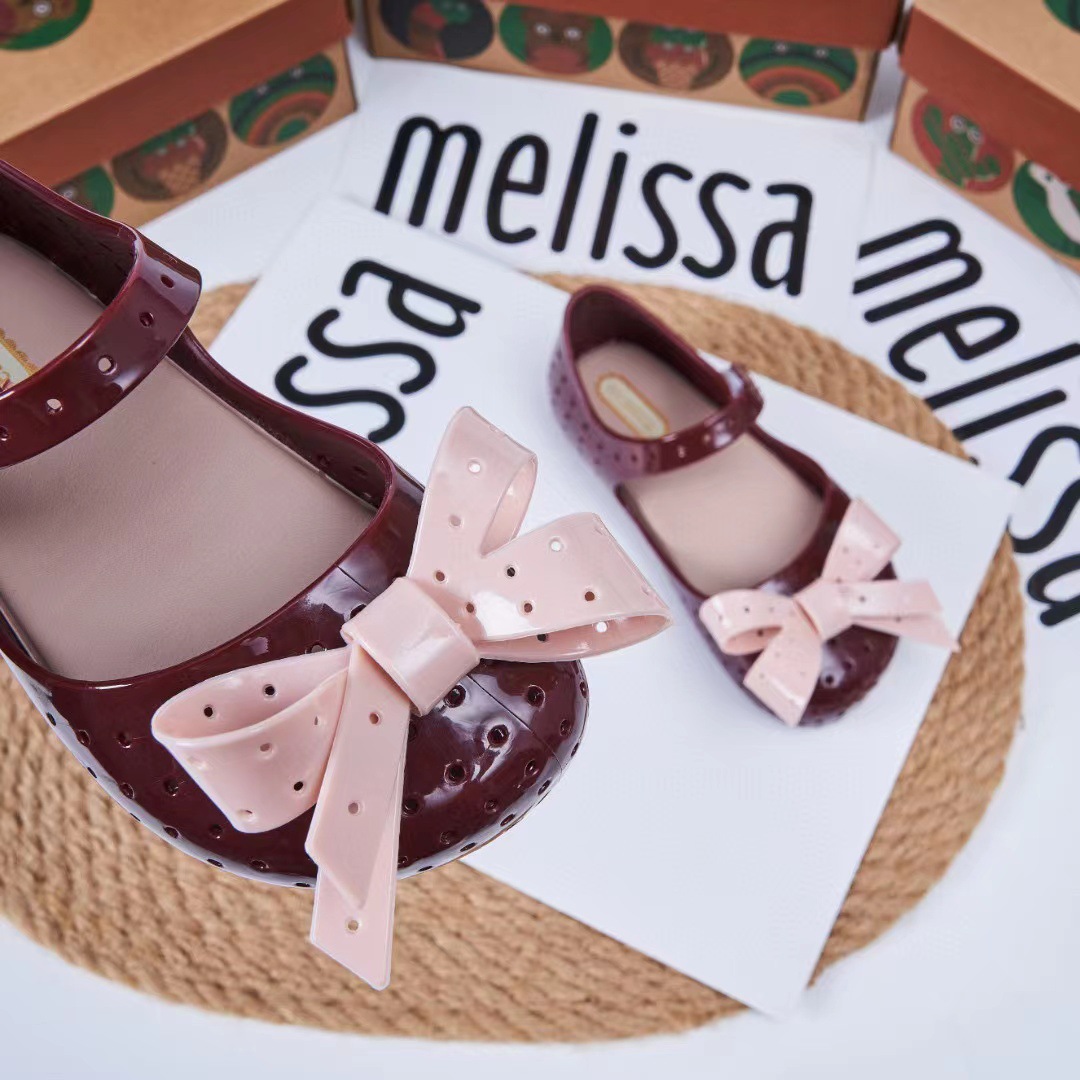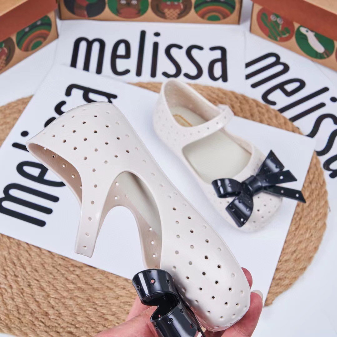 2023 멜리사 새로운 샌들 스퀘어 헤드 보우 홀 신발 여자 샌들 비치 신발 향기로운