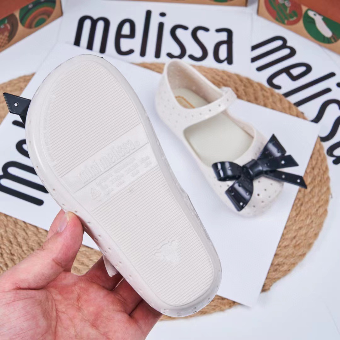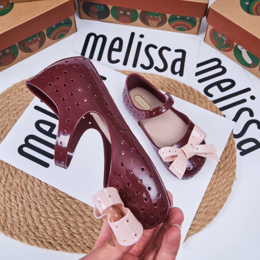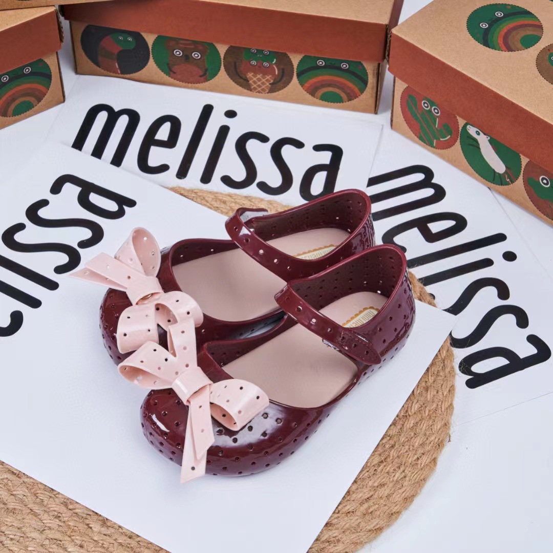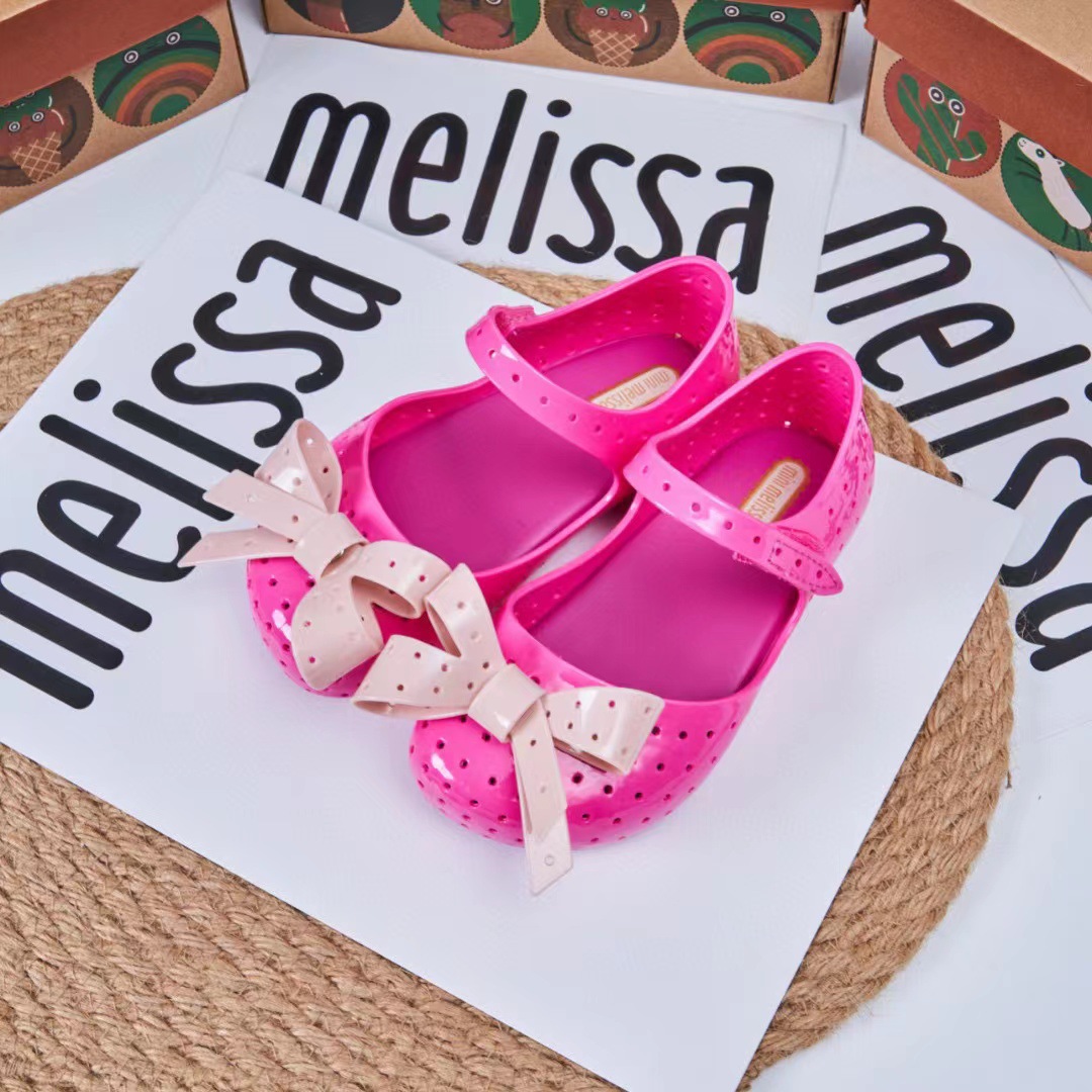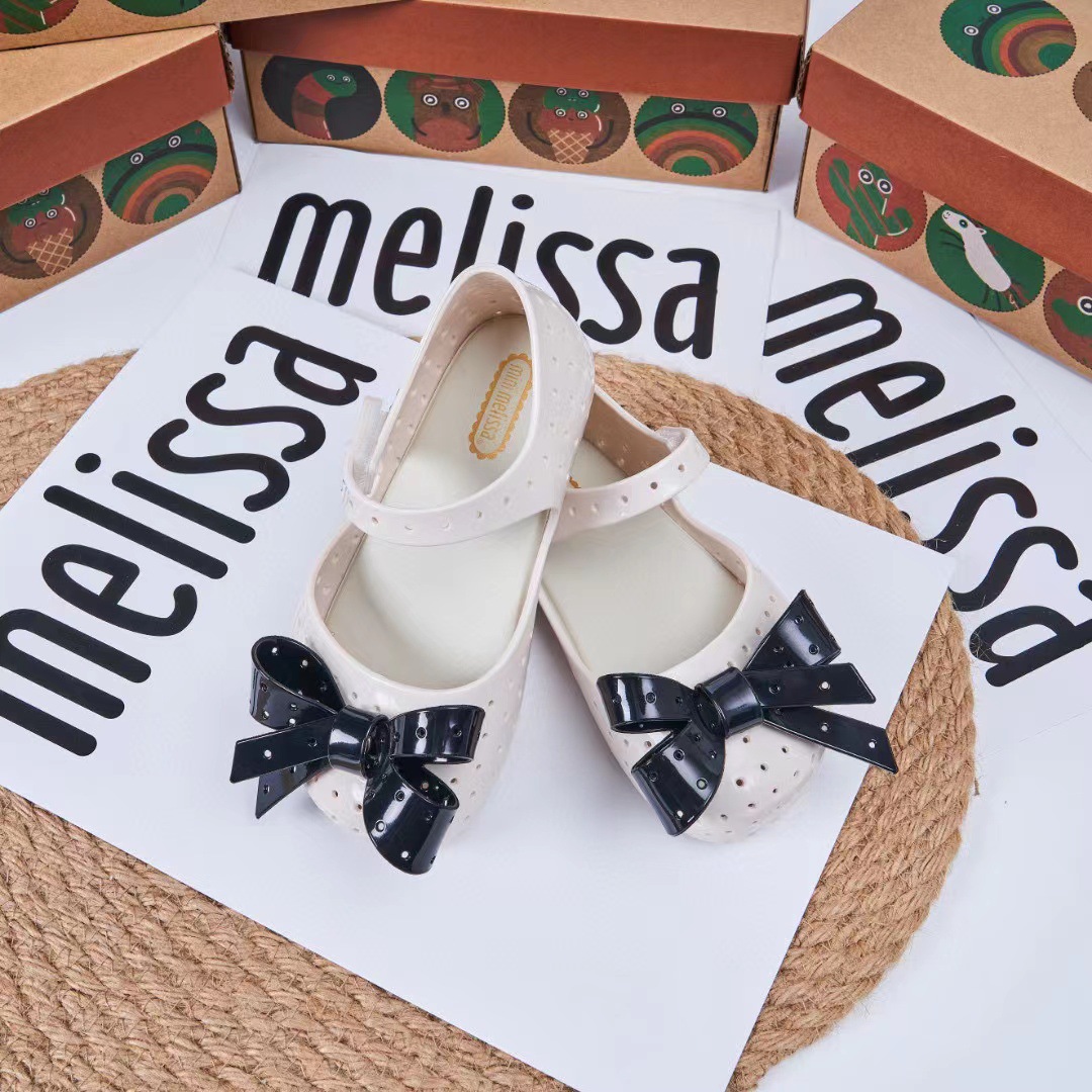 2023 멜리사 새로운 샌들 스퀘어 헤드 보우 홀 신발 여자 샌들 비치 신발 향기로운