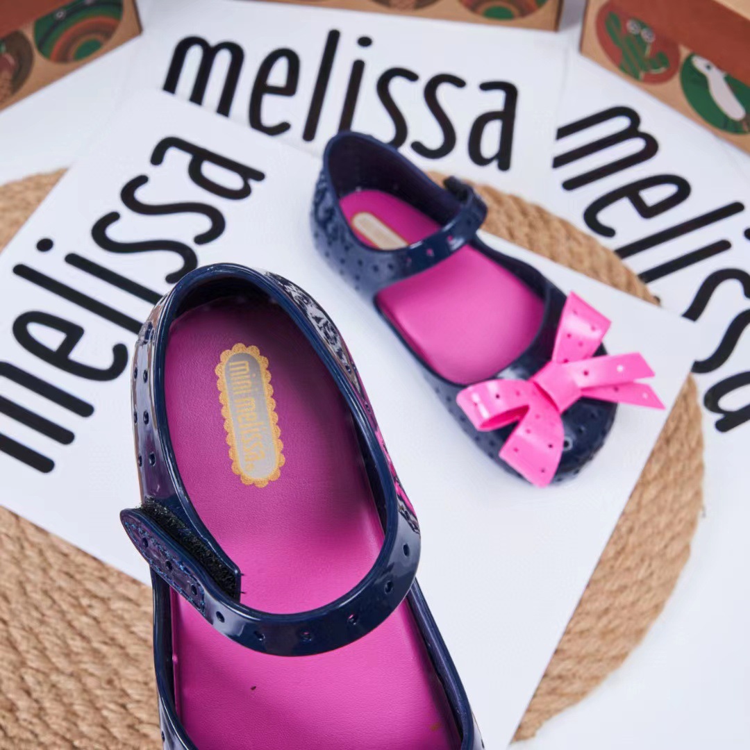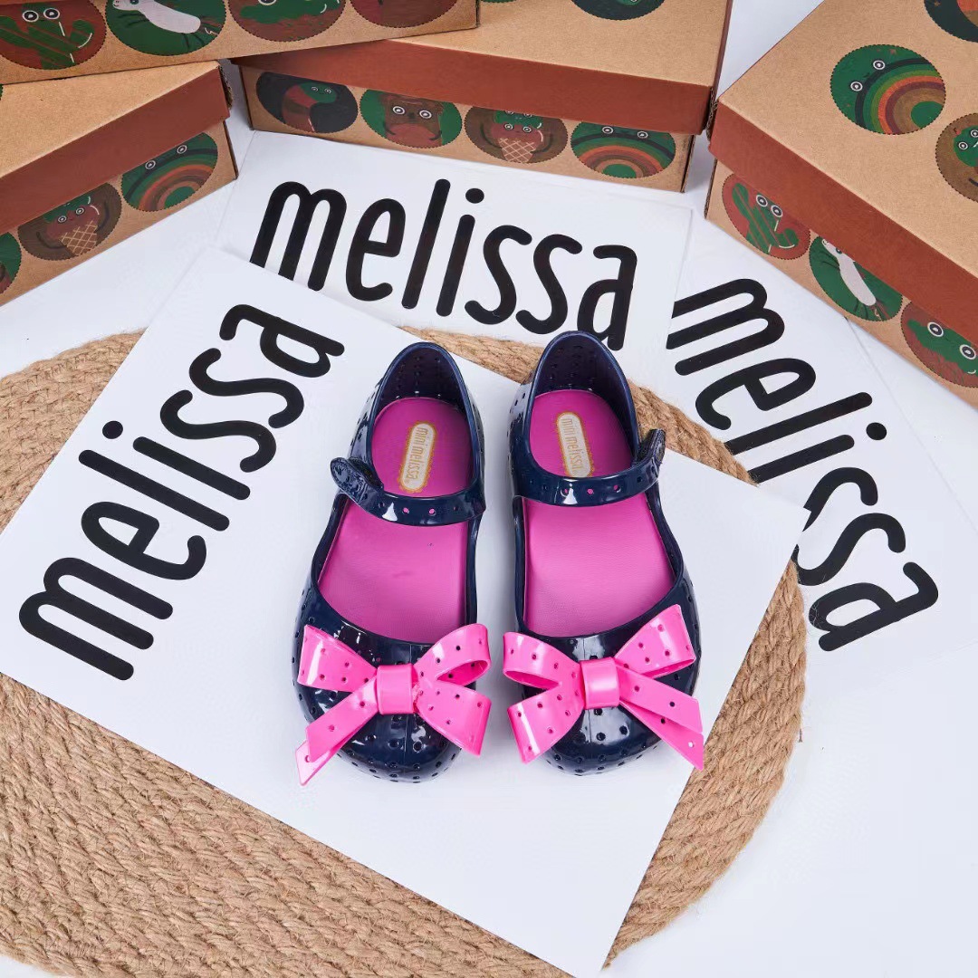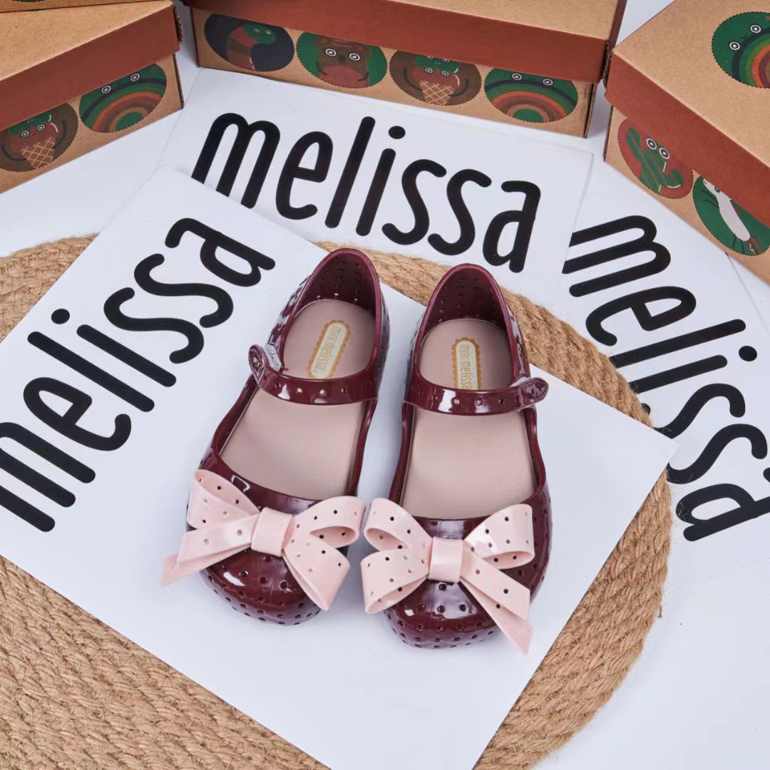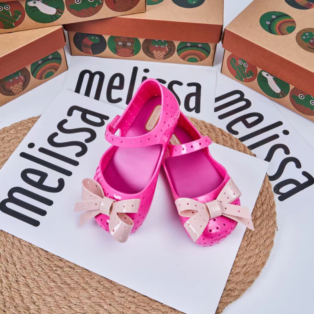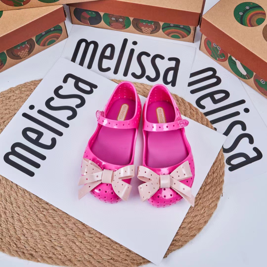 2023 멜리사 새로운 샌들 스퀘어 헤드 보우 홀 신발 여자 샌들 비치 신발 향기로운