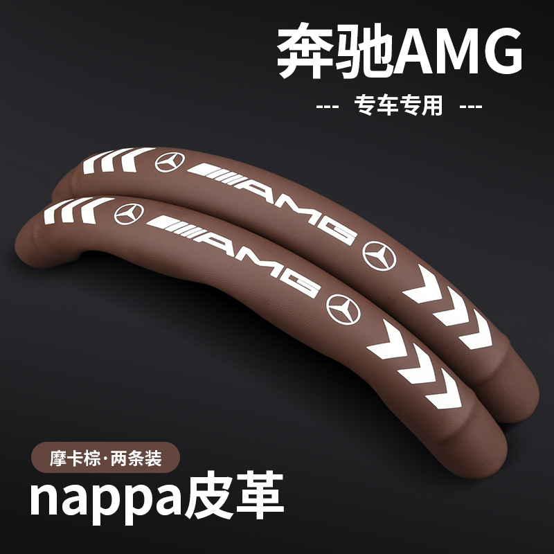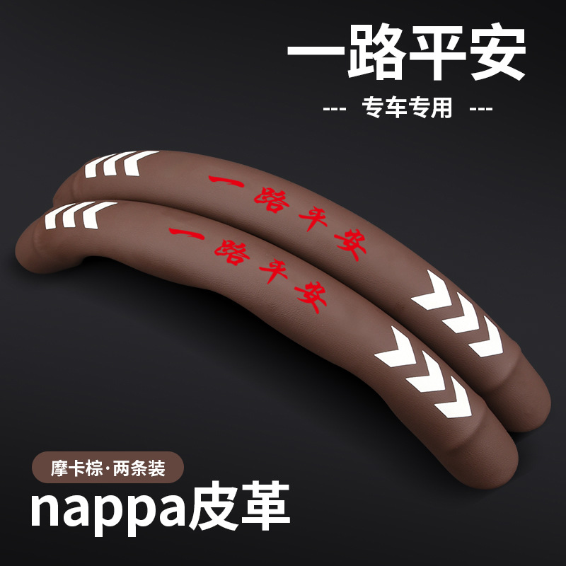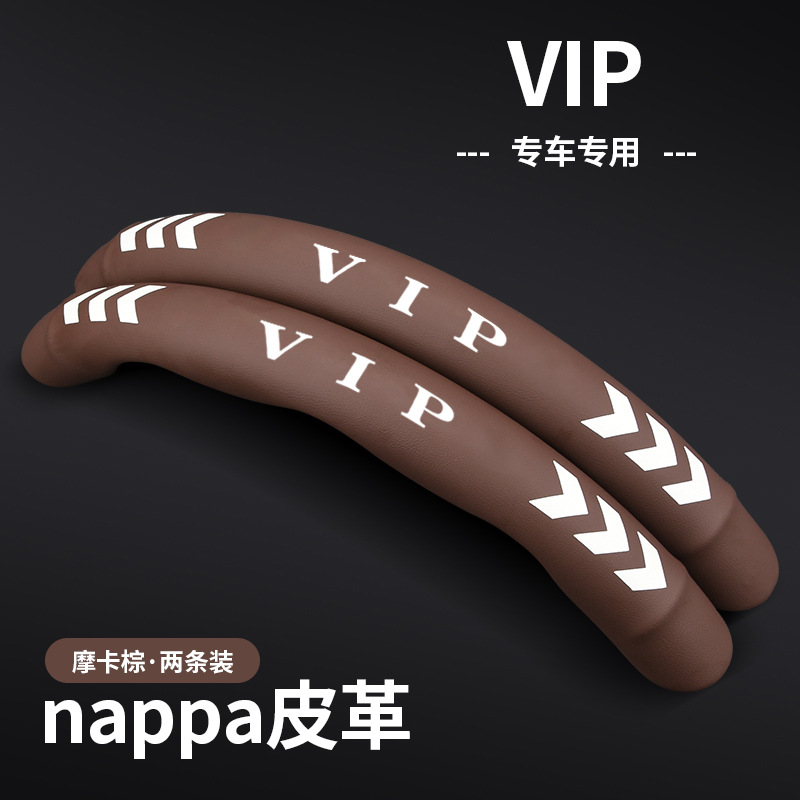 • 야광 카드 가죽 손잡이 세트 2 팩 [모카 다크 브라운] 자동차 로고 비고