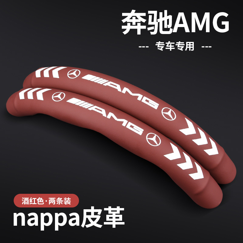 • 야광 카드형 가죽 손잡이 세트 2 팩 [버건디] 자동차 로고 비고