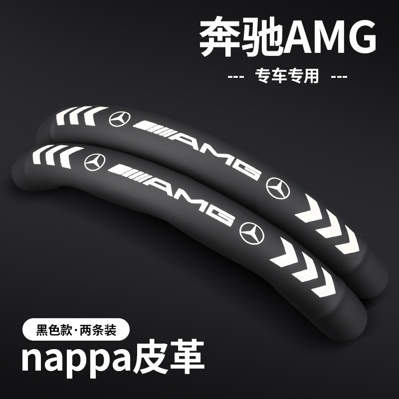• 야광 카드형 가죽 손잡이 세트 2 팩 [블랙] 차 로고 비고