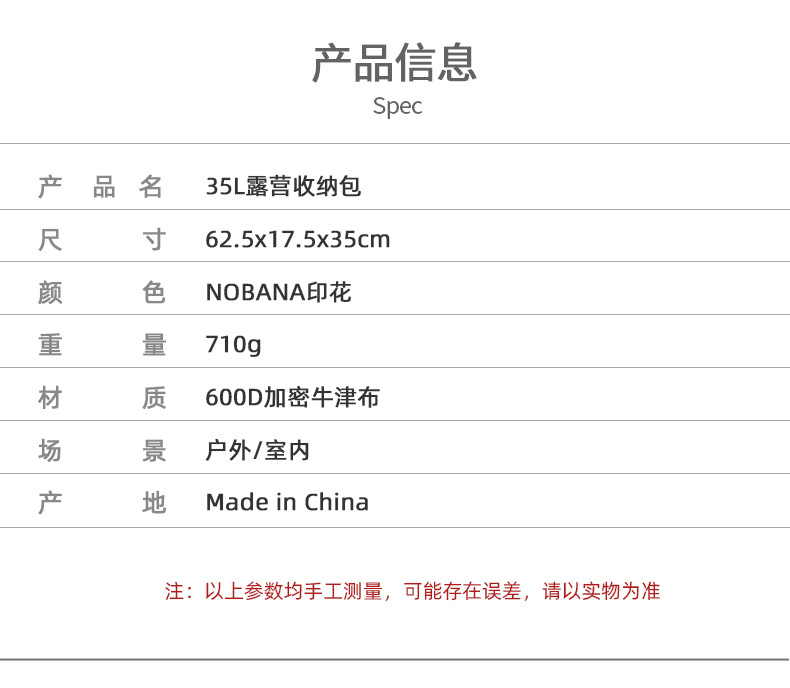 노바나 야외 캠핑 가방 35L 대용량 잡화 보관 가방 휴대용 장비 자동차 여행 가방 핸드백스토어 가기
