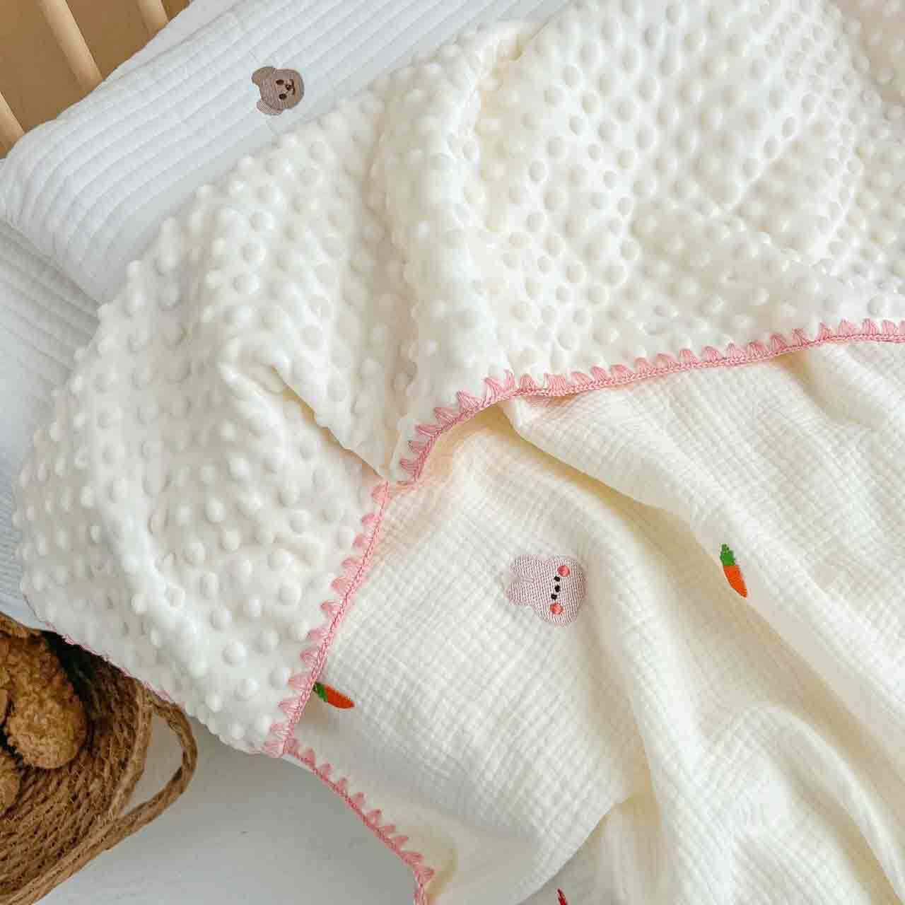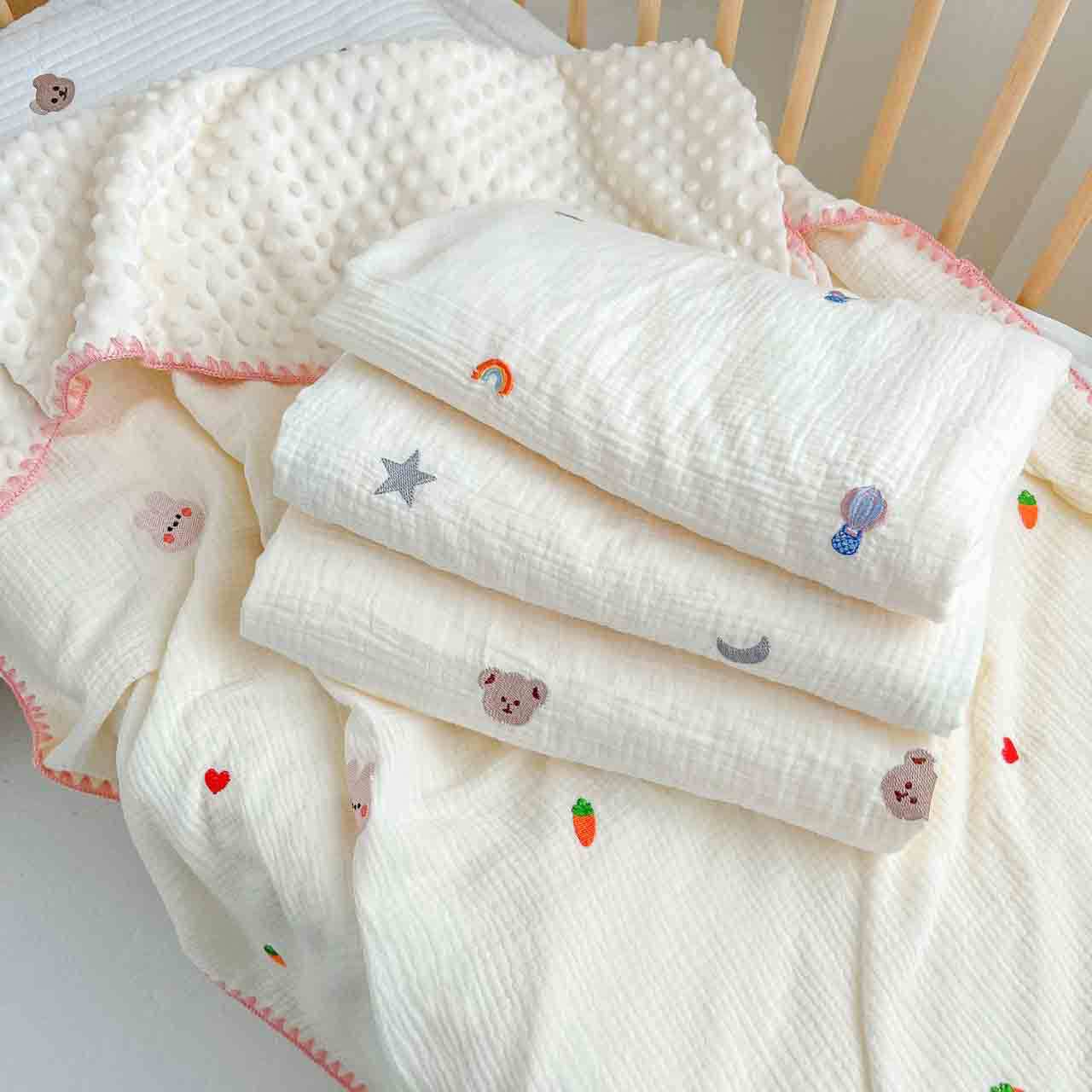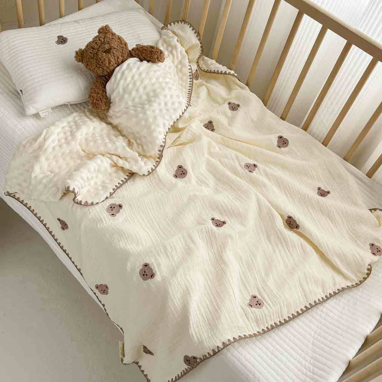 비니 벨벳 자수 곰 껍질 옆 아기 담요 거즈면 담요 어린이 낮잠 담요 아기 편안 이불