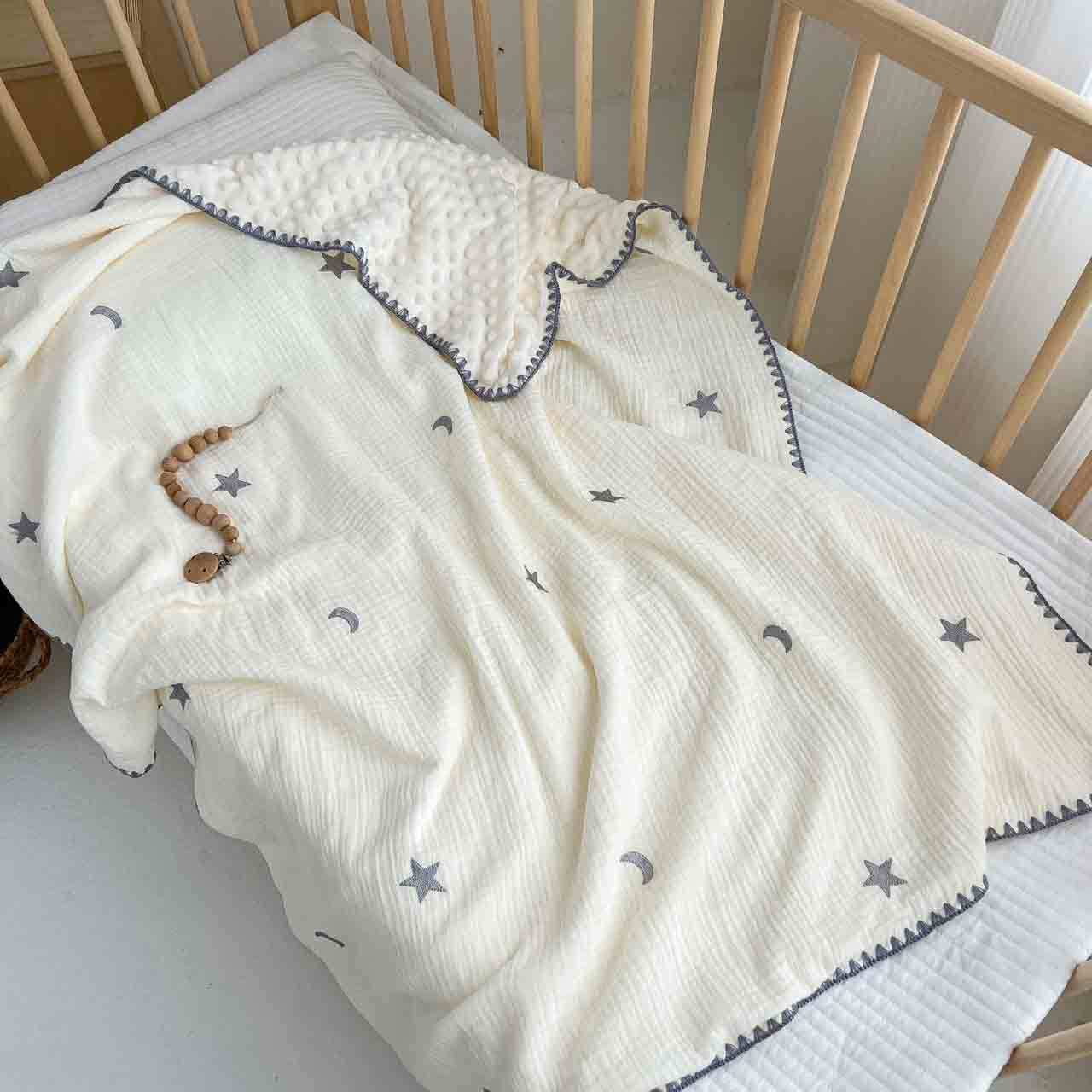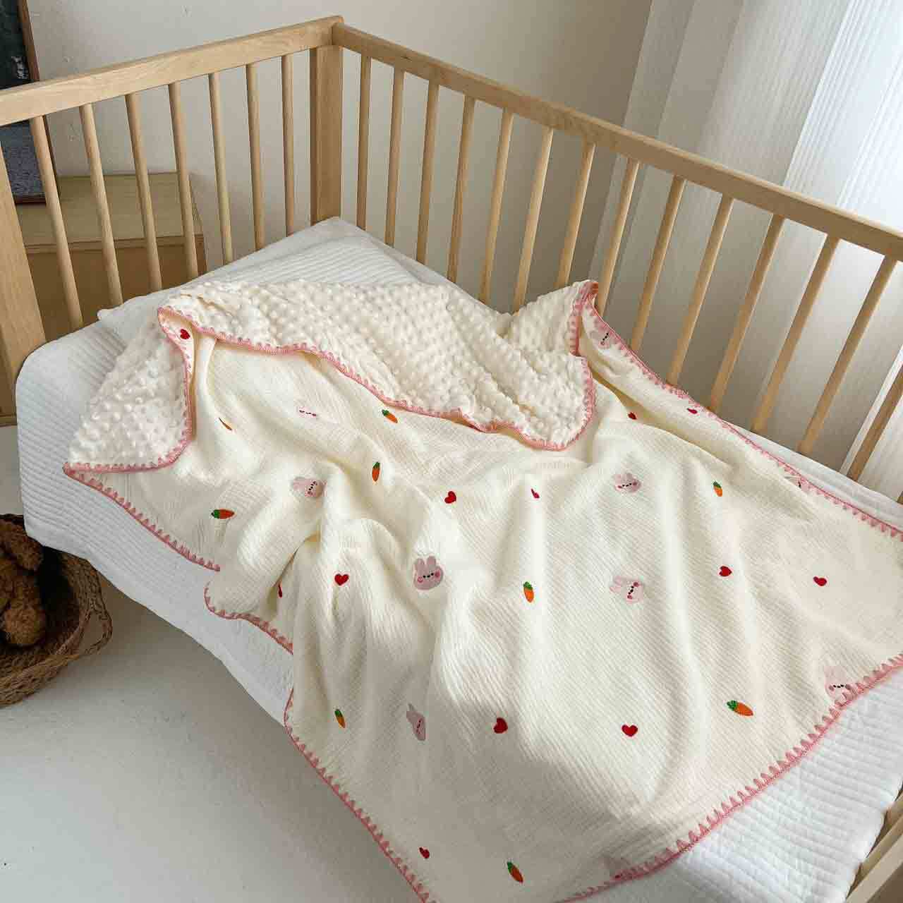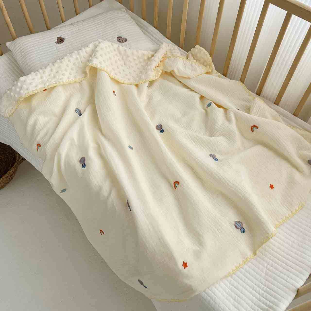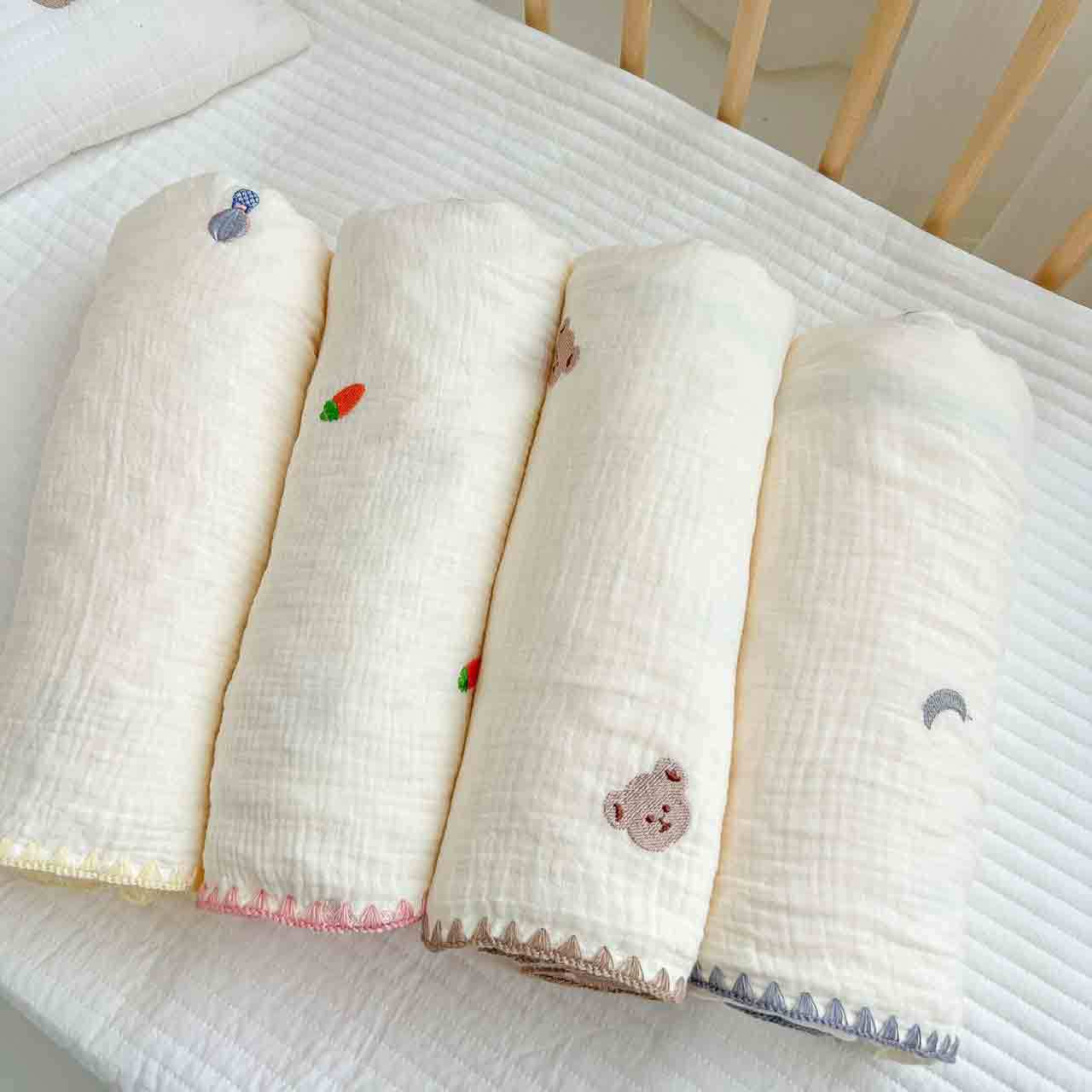 비니 벨벳 자수 곰 껍질 옆 아기 담요 거즈면 담요 어린이 낮잠 담요 아기 편안 이불
