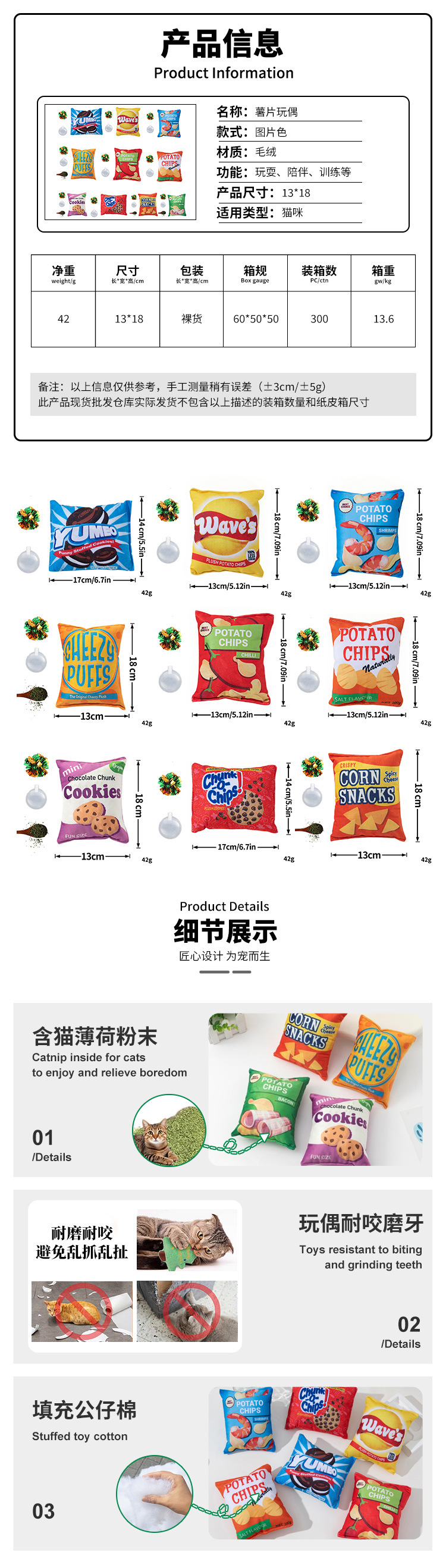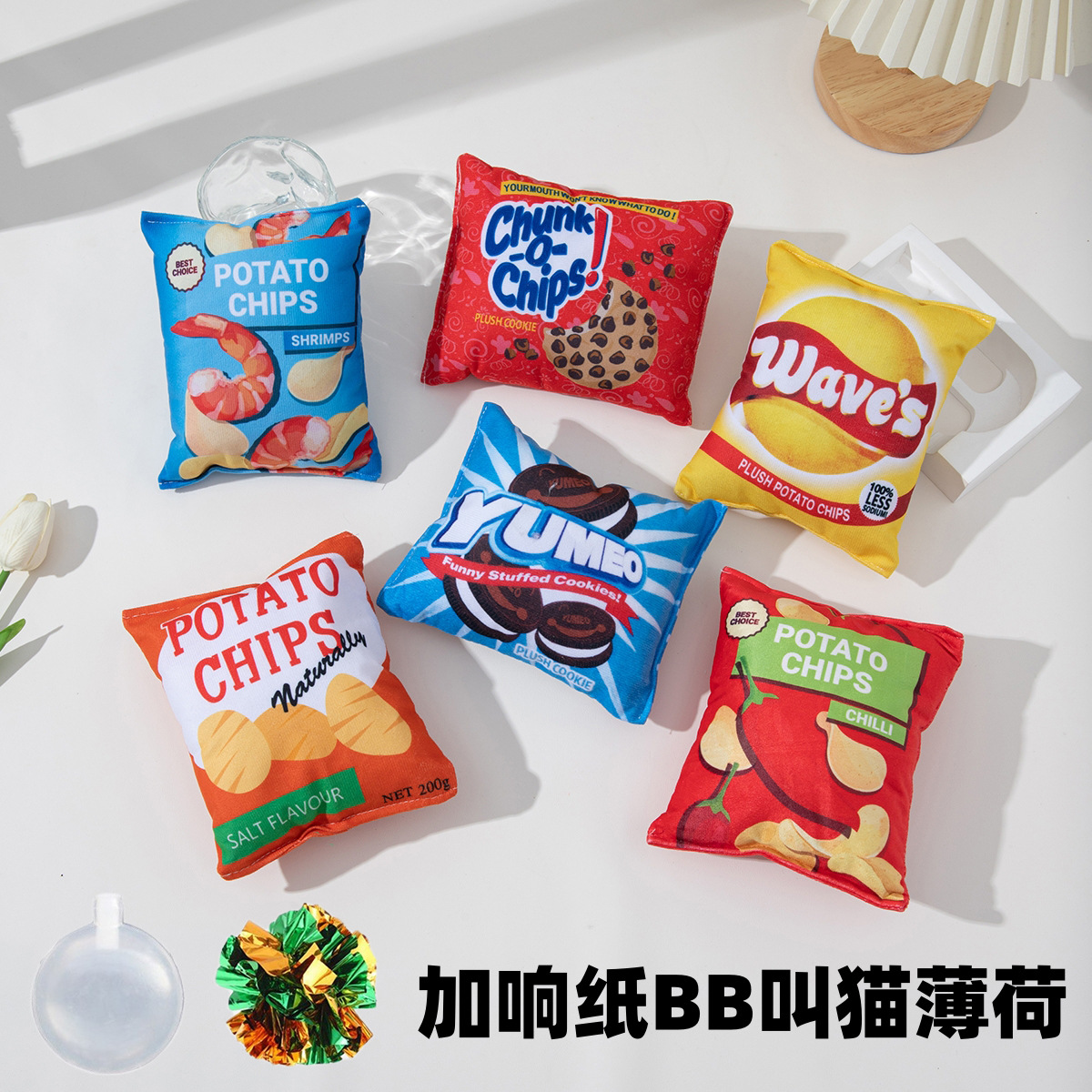 국경을 넘는 고양이 장난감, 소리나는 감자칩 인형, 치아갈이용 애완동물 장난감, 내구성 있는 씹는 장난감, 캣닢 장난감, 드롭쉬핑