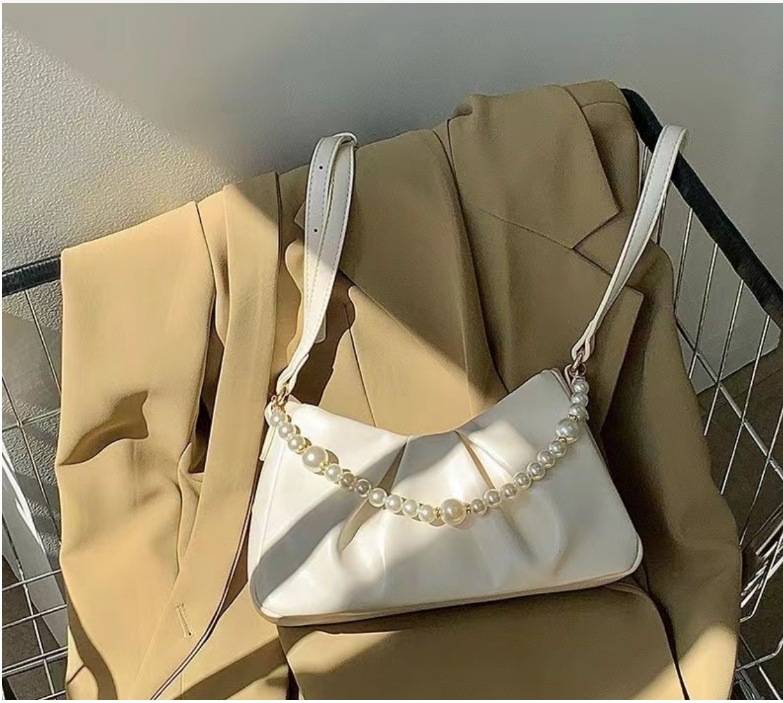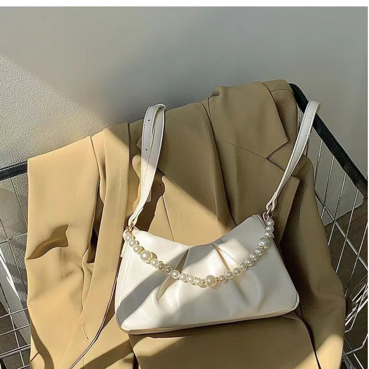 여성을위한 프랑스 다목적 흰색 주름 구름 가방 여성을위한 2025 새로운 진주 체인 겨드랑이 가방 어깨 크로스 바디 가방스토어 가기