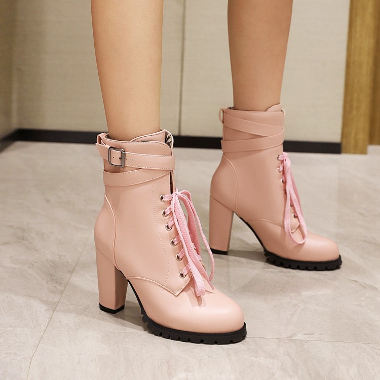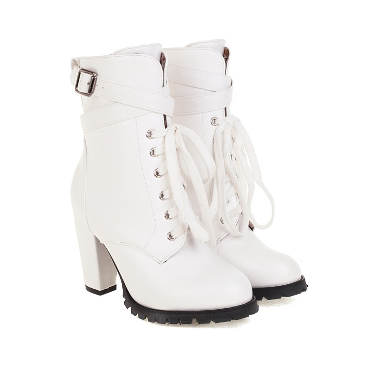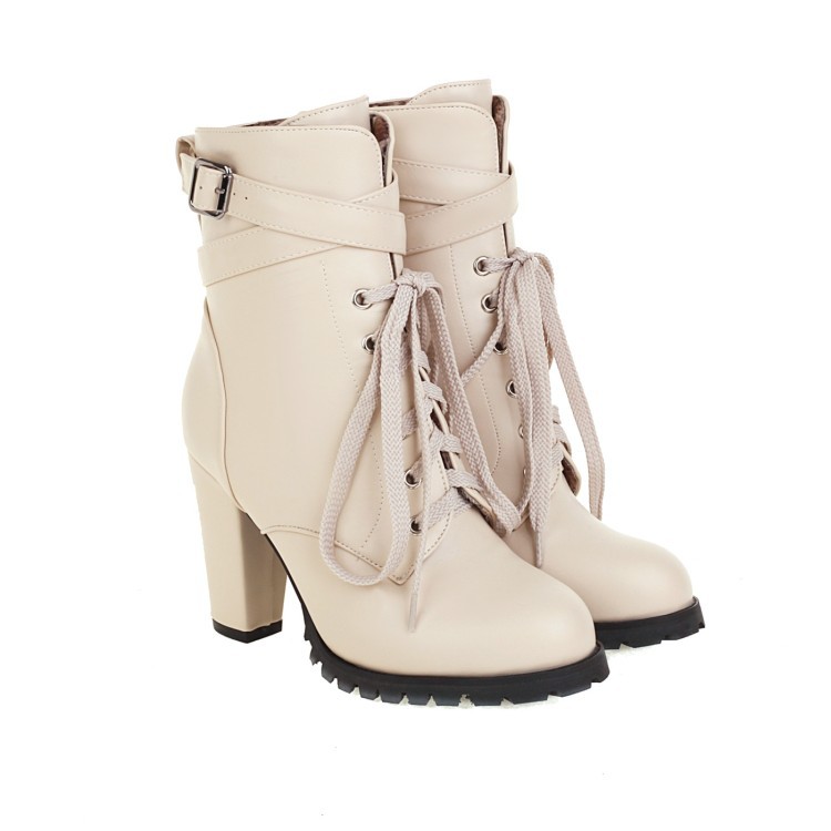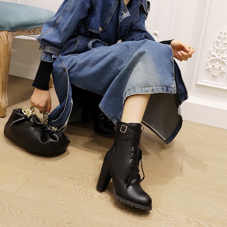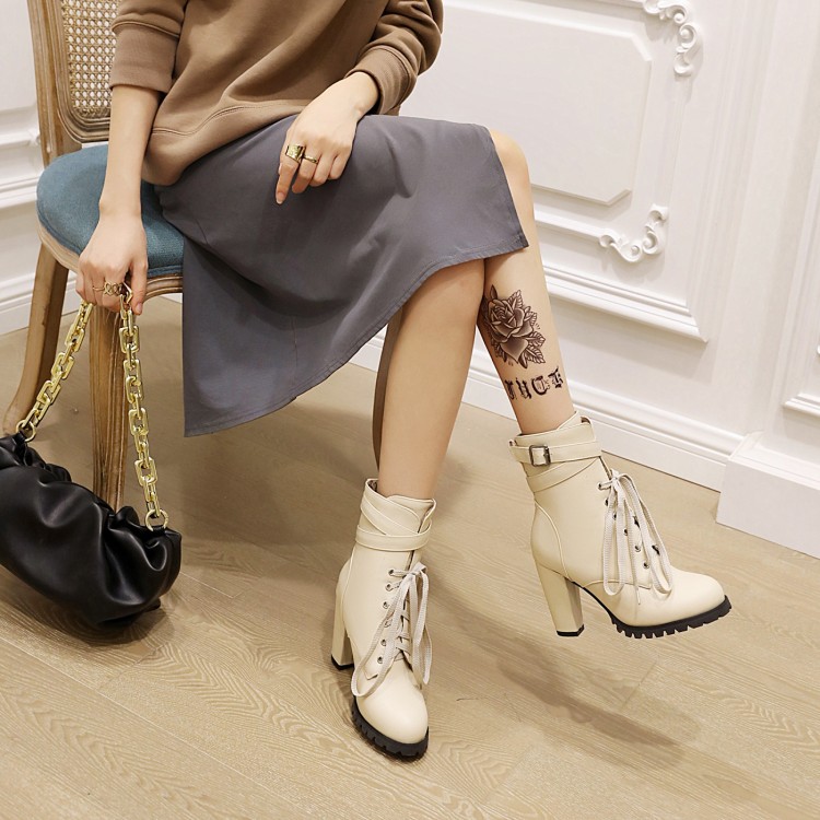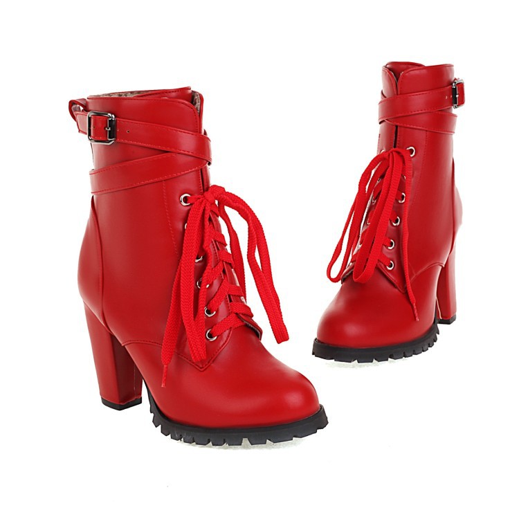 짧은 부츠 여성의 대외 무역 하이힐 마틴 부츠 레이스 업 낮은 크로스 보더 알몸 부츠 여성 신발 가을과 겨울 싱글 부츠 플러스 사이즈 32-48스토어 가기