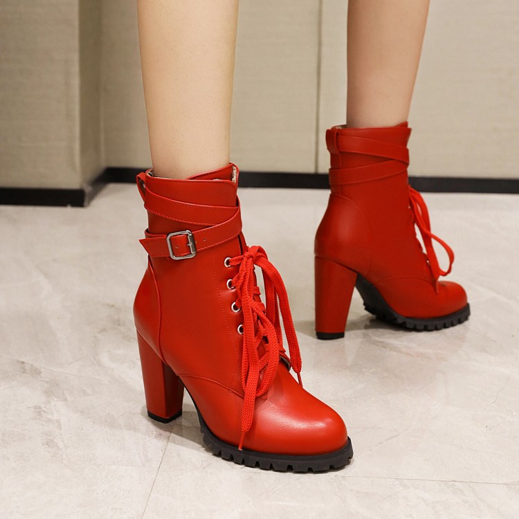 짧은 부츠 여성의 대외 무역 하이힐 마틴 부츠 레이스 업 낮은 크로스 보더 알몸 부츠 여성 신발 가을과 겨울 싱글 부츠 플러스 사이즈 32-48