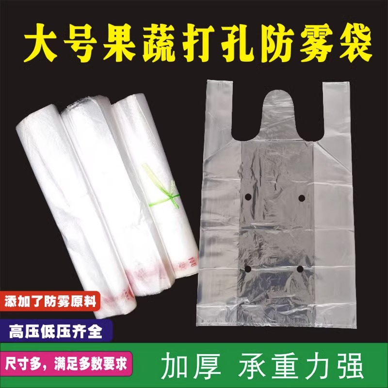 과일 및 야채 용 김서림 방지 비닐 봉투 초대형 두꺼운 통기성 천공 포장 백 흰색 투명 조끼 가방스토어 가기