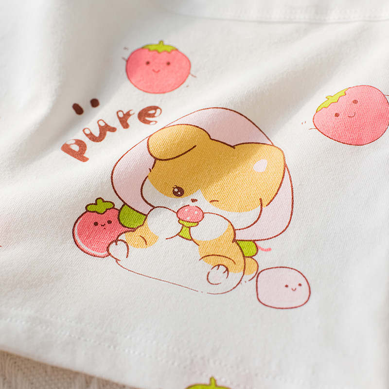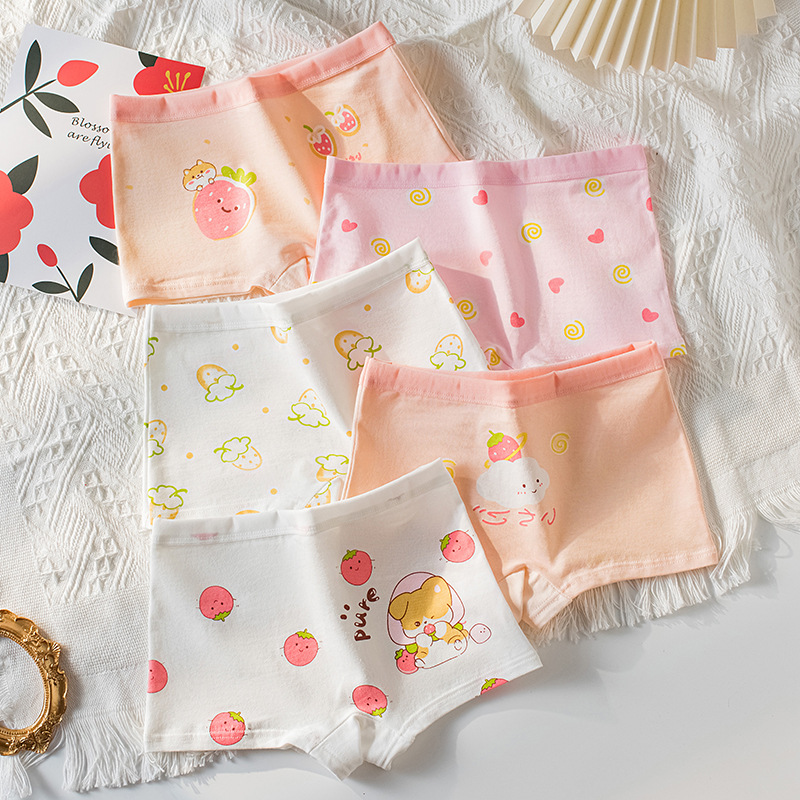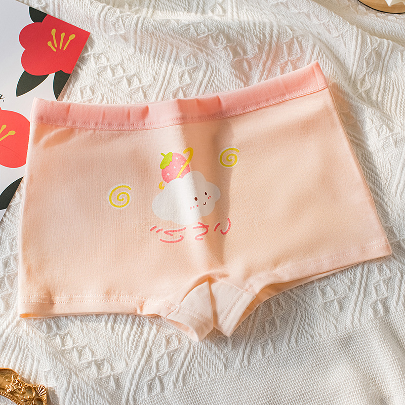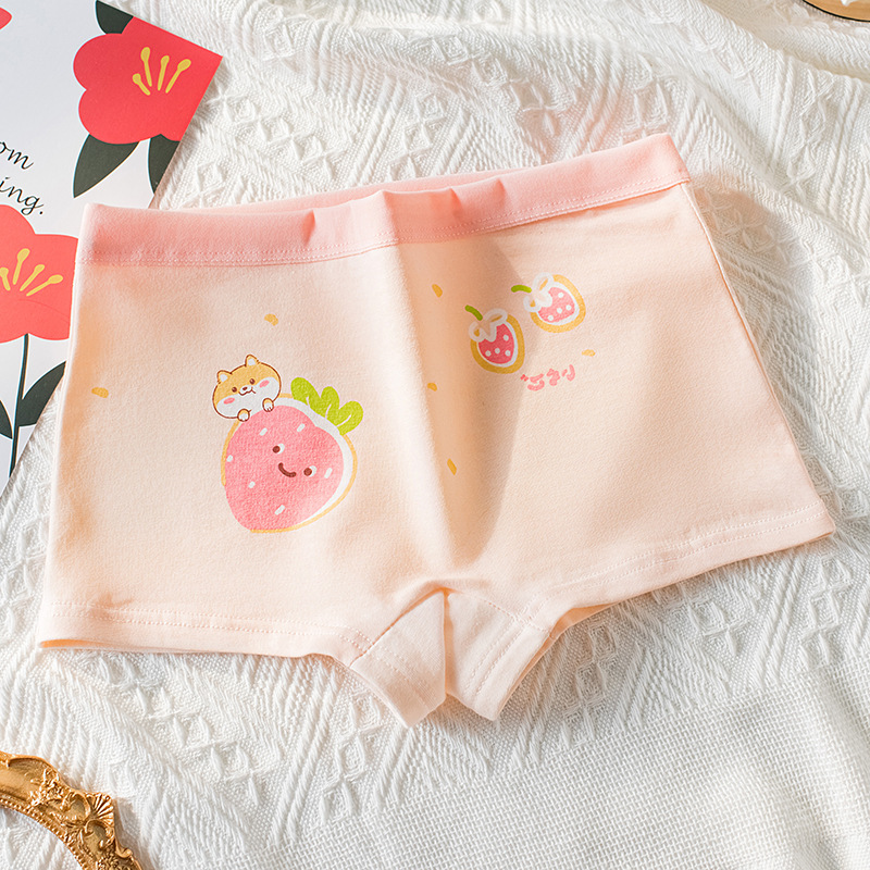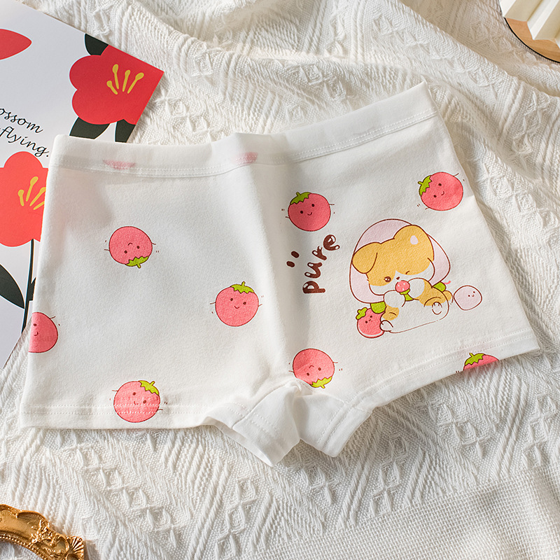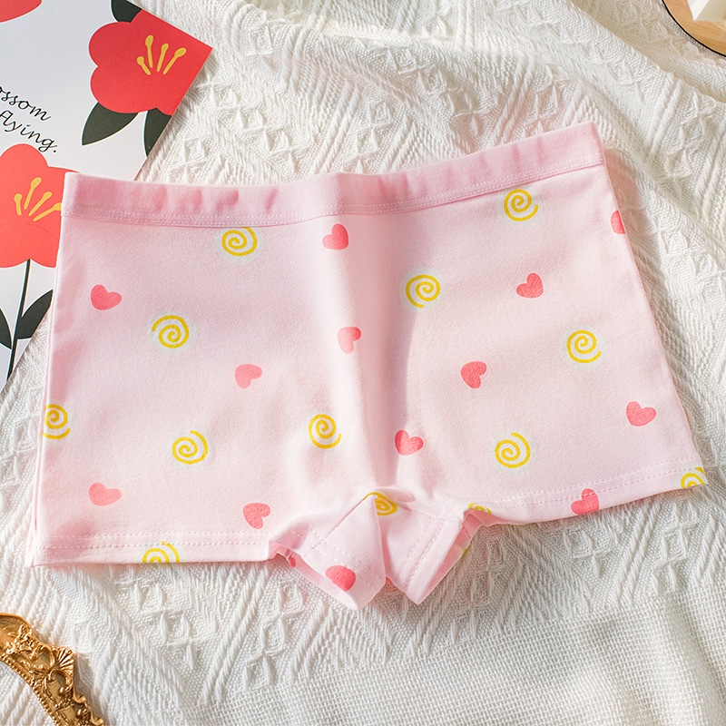 여아 속옷 복서 면 아기 어린 소녀 중간 및 큰 어린이 2-14 세 귀여운 곰 체리 인쇄 네 모서리
