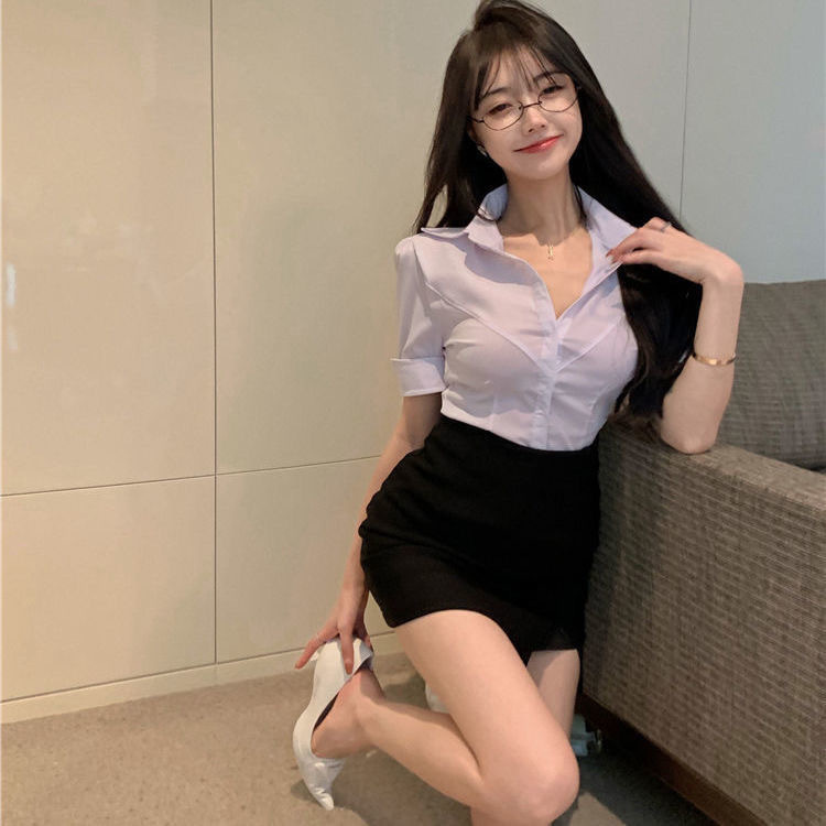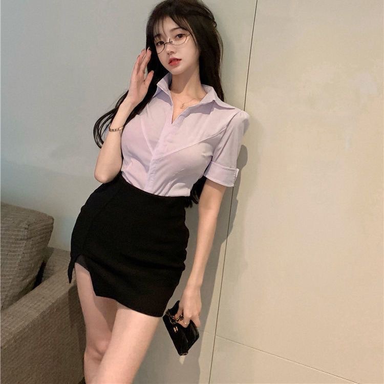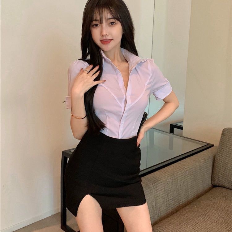 스파이스 걸스 순수한 욕망 JK 제복 ol 통근 여성 의류 라이트 성숙한 세트 여름 셔츠 엉덩이 하프 스커트 투피스 세트