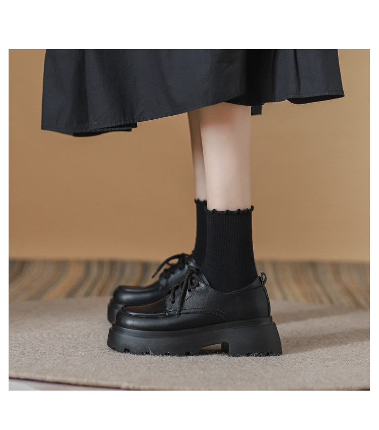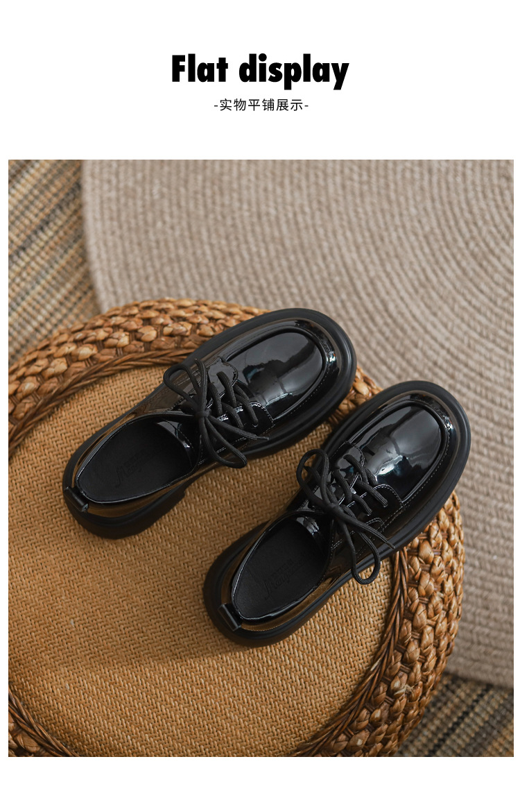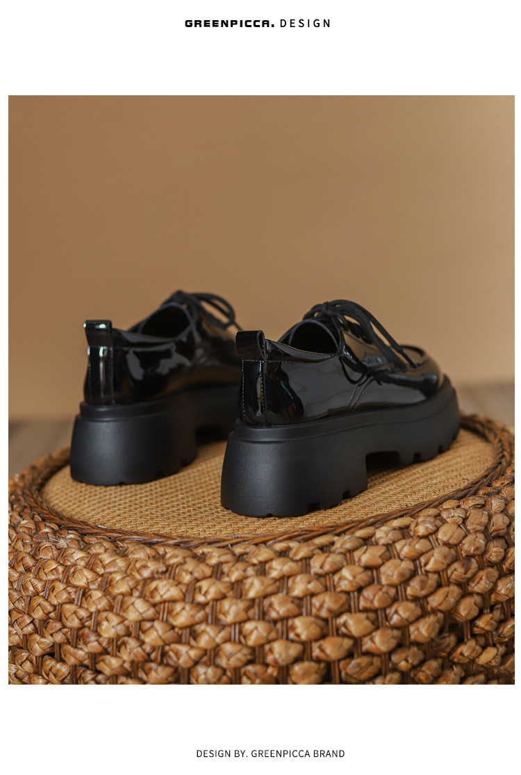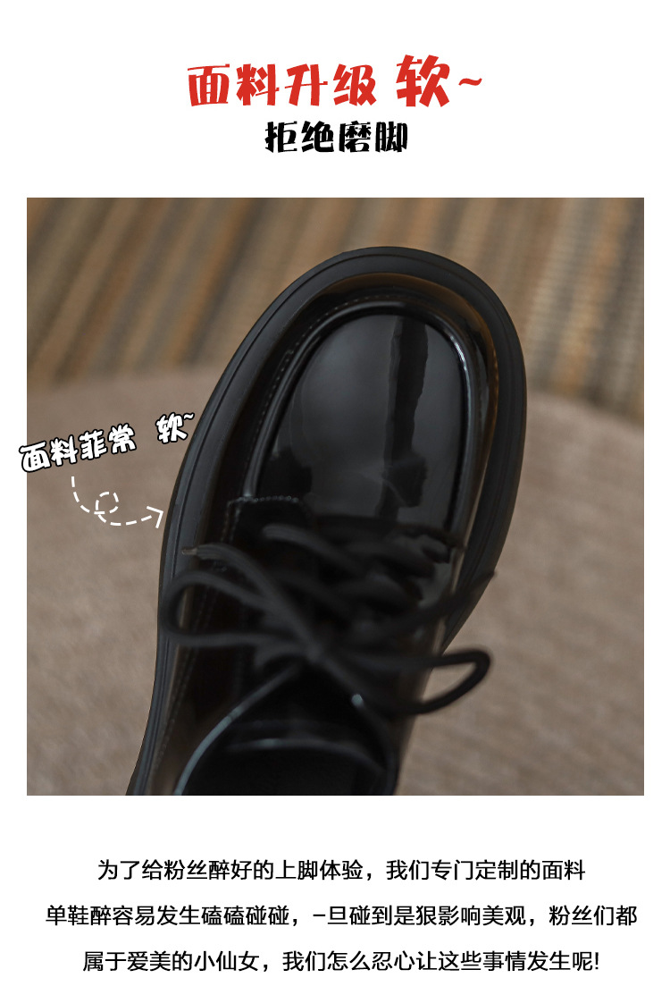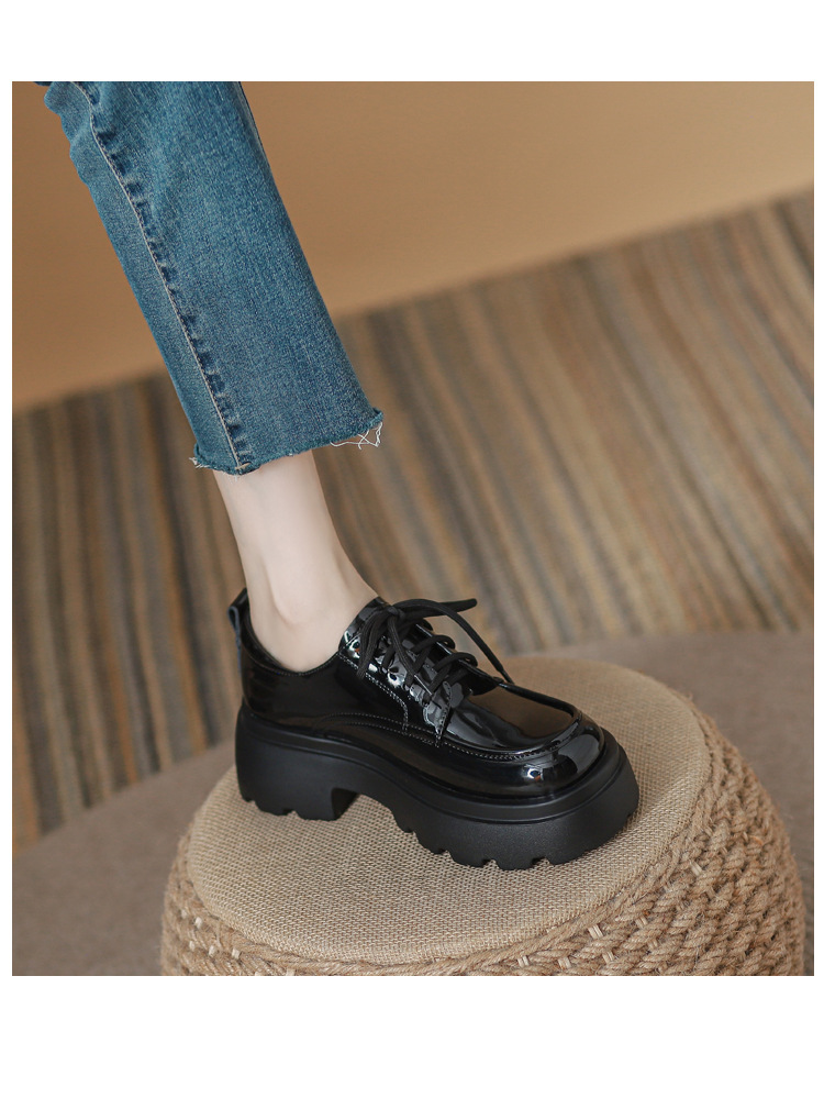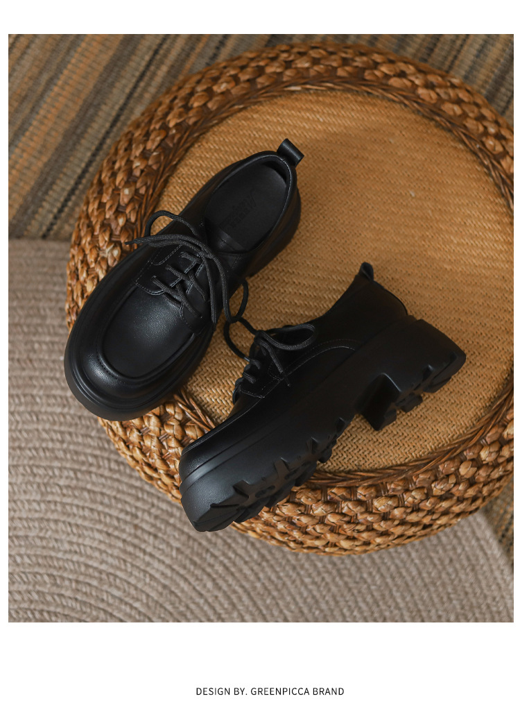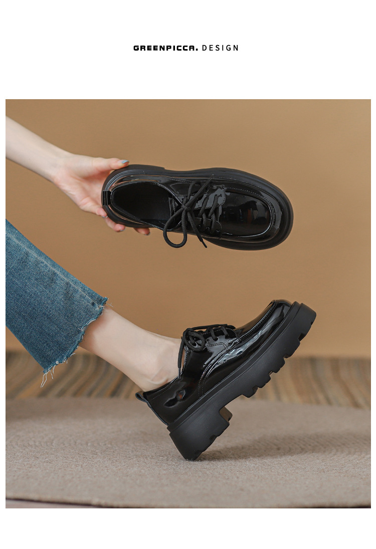 가죽 로퍼 여성용 2023 새로운 청키 힐 영국 스타일 작은 가죽 신발 여성용 기모 레이스 업 두꺼운 블랙 싱글 레이어 신발스토어 가기