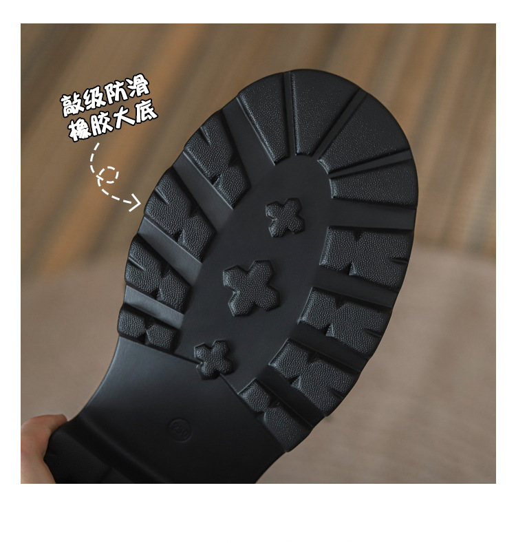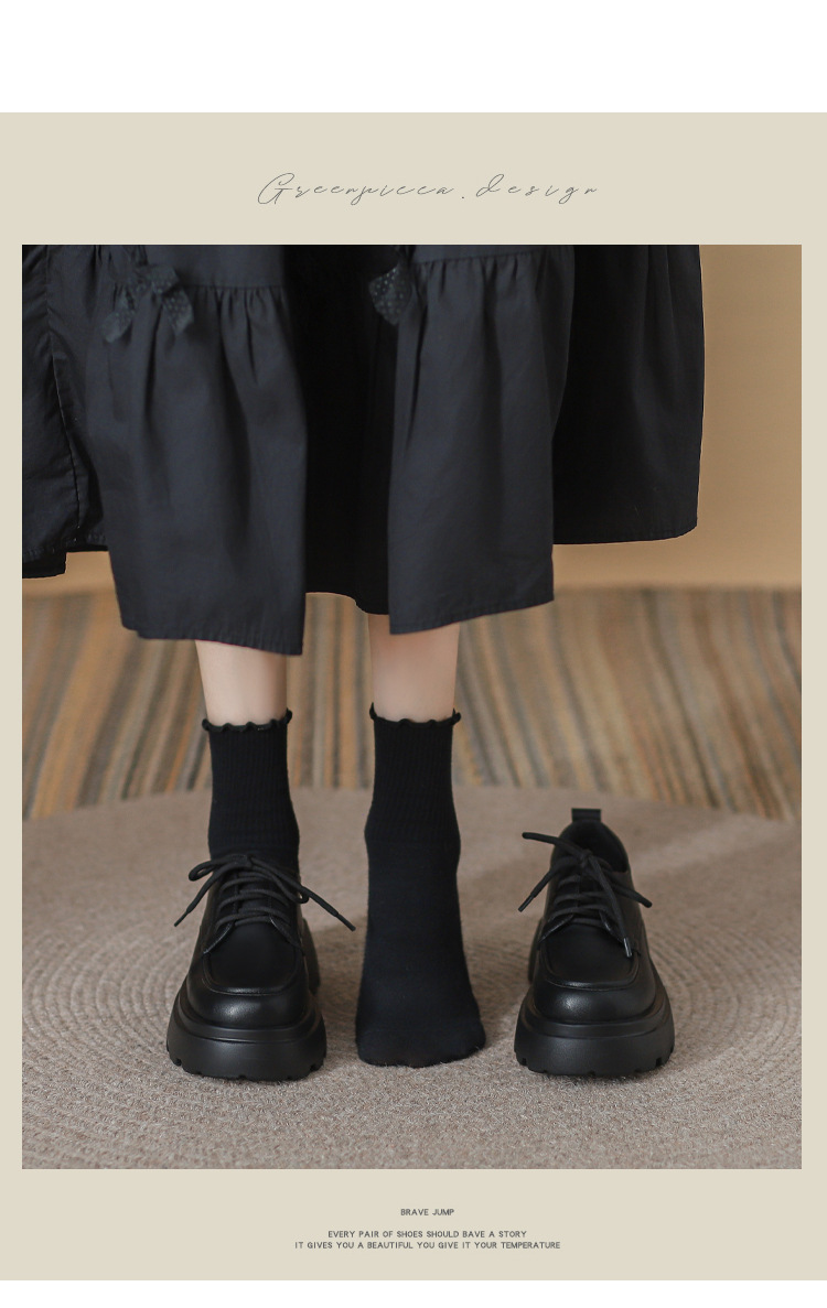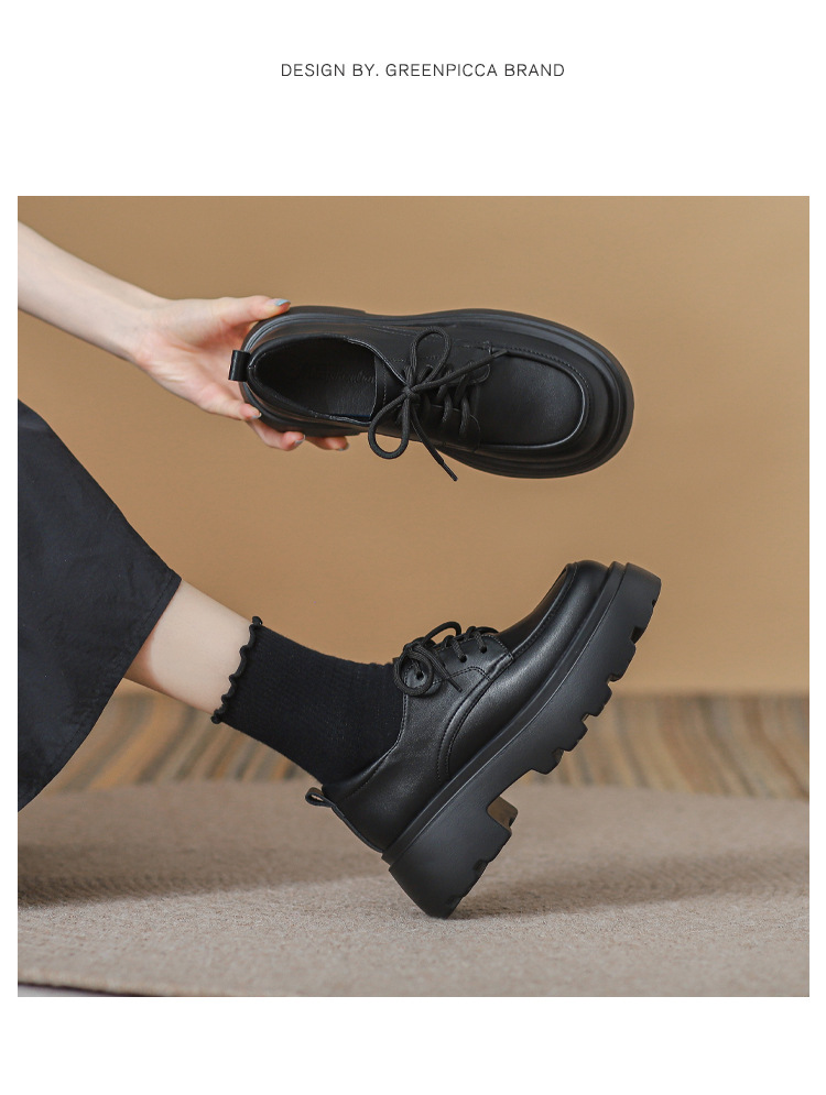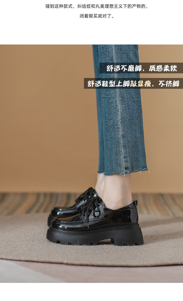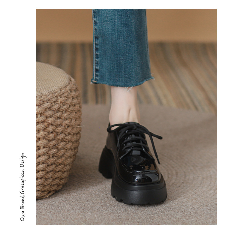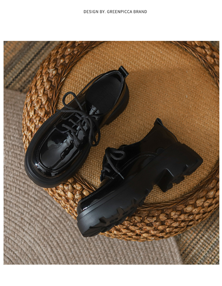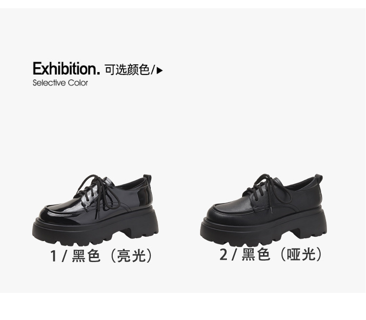 가죽 로퍼 여성용 2023 새로운 청키 힐 영국 스타일 작은 가죽 신발 여성용 기모 레이스 업 두꺼운 블랙 싱글 레이어 신발스토어 가기