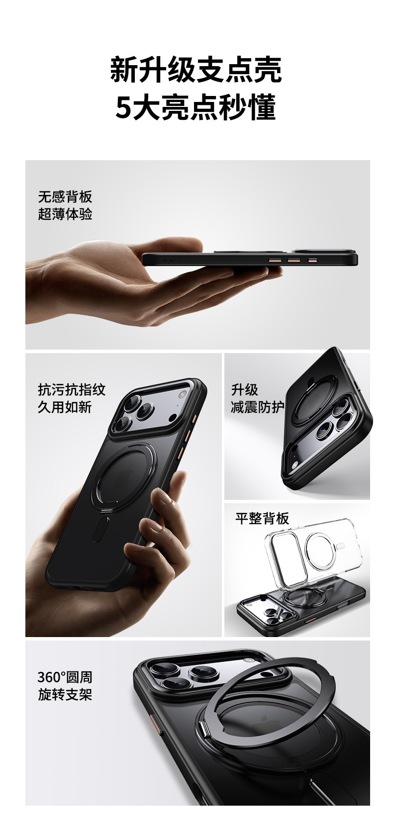 iPhone16E 휴대폰 케이스에 적합, 360도 회전 지점, 5개의 금속 브래킷, Apple 17promax 보호 케이스