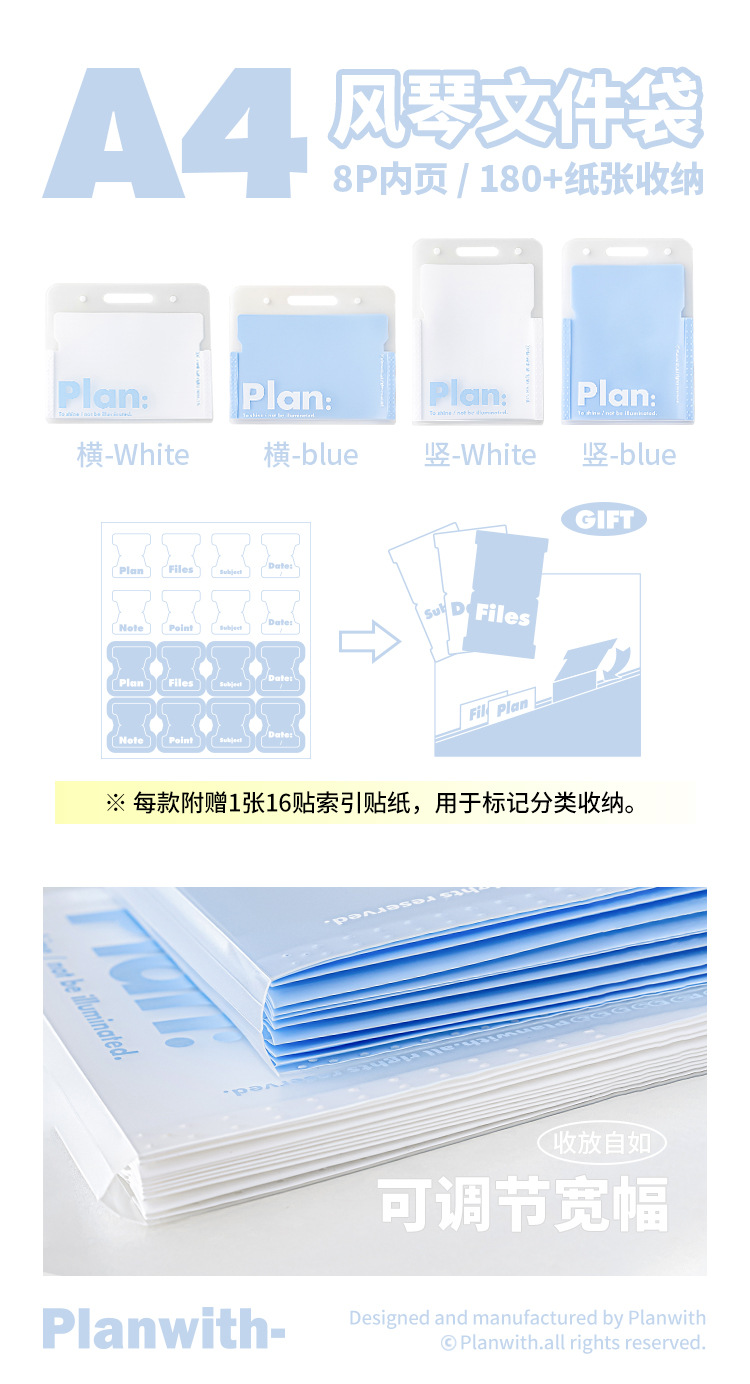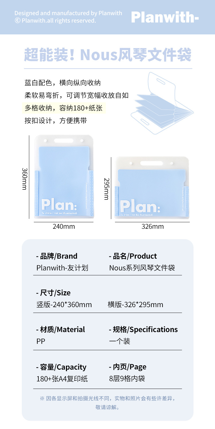 Planwith Nous 오르간 파일 가방 다층 대용량 A4 데이터 분류 폴더 삽입 보관 가방