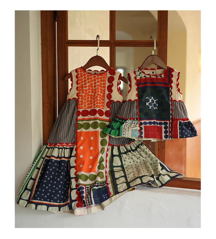 因为这个版型是由很多不同颜色的布块组合的,AI排版背心和裙子胸前的布块颜色是随机的(没有办法统一),介意者勿拍哟!
