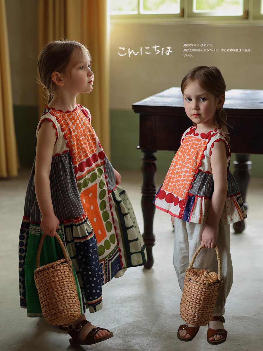 소녀의 틈새 우아한 복고풍 원피스 일본식 대비 컬러 스티칭 조끼 원피스 인형 셔츠 세련된 에스닉 스타일 스커트