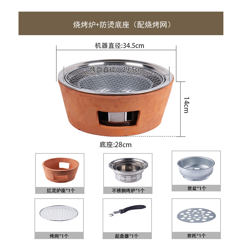 • ✪❀▼▼❀✪붉은 진흙 오븐 + 그릴 그리드(스테인리스 스틸 패드 포함)✪❀▼▼❀✪