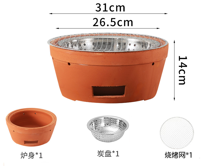 A524 한국식 바베큐 그릴 가정용 소형 숯 바베큐 그릴 야외 로스트 랙 상업용 무연 화상 방지 원형 그릴스토어 가기