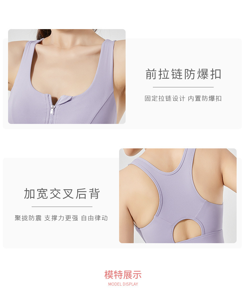원피스 지퍼 고정 컵 스포츠 브라 충격 방지 피트니스 고강도 얇은 외부 뷰티 백 요가 브래지어스토어 가기