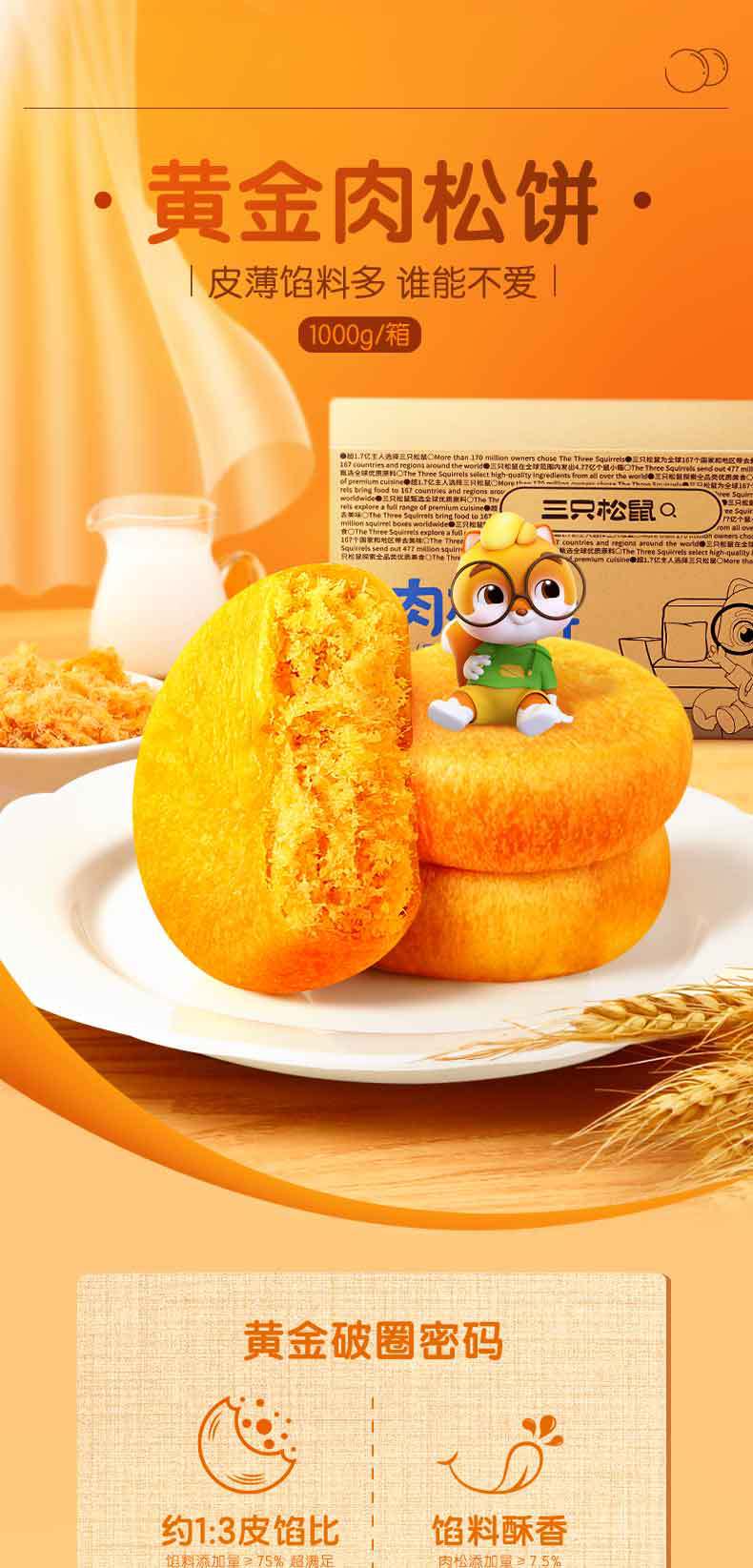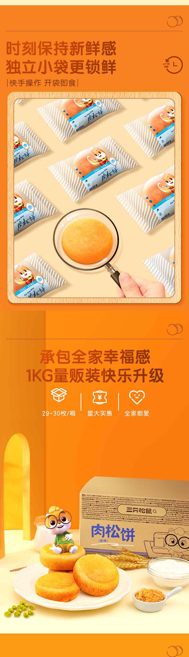 다람쥐 세 마리 황금 미트 치실 케이크 1kg/상자 캐주얼 스낵 독립 소형 포장 아침 스낵