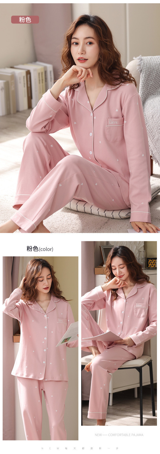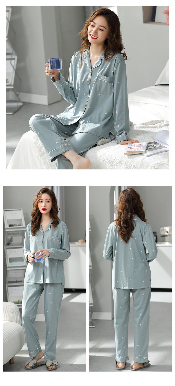 100% 순면 잠옷 여자의 봄과 가을 긴 소매 가디건 세트 캐주얼 가디건 문 옷 겨울과 여름
