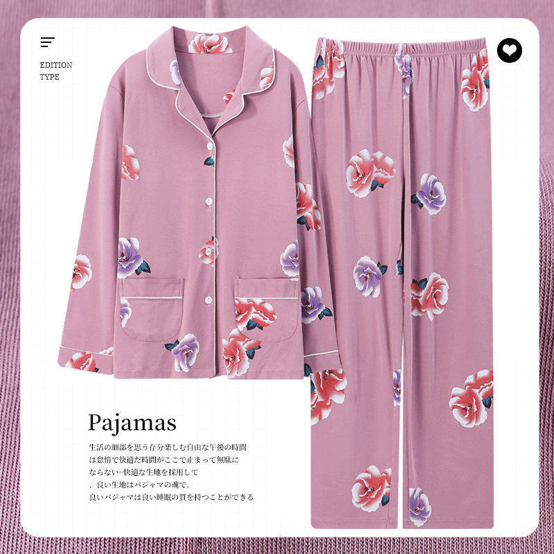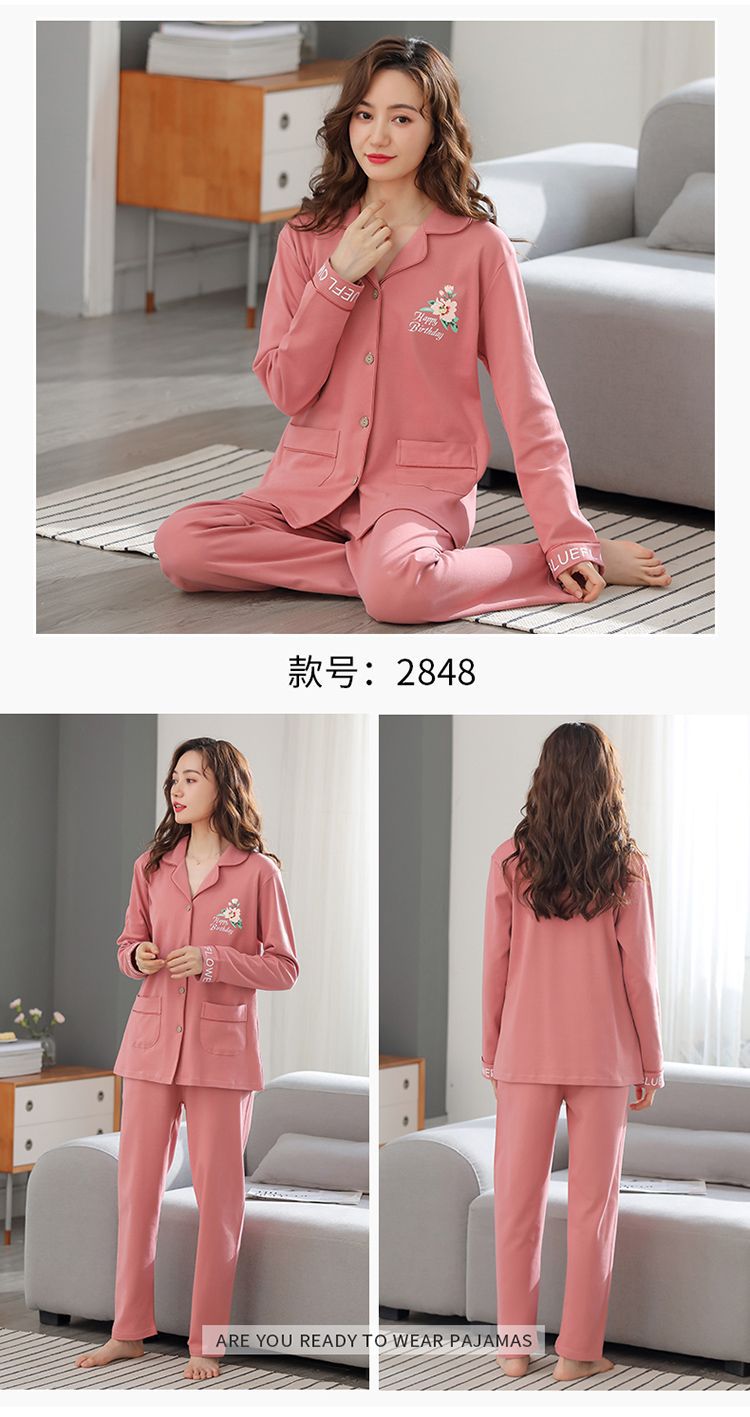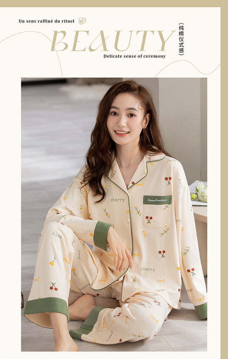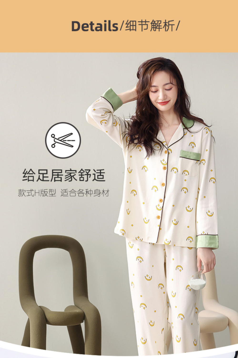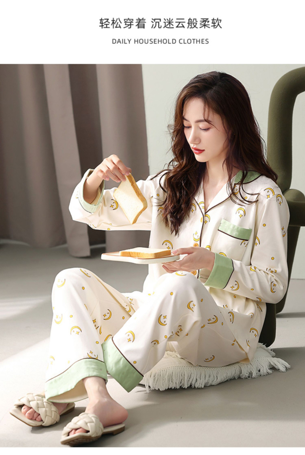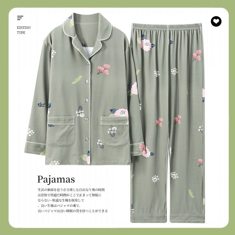 100% 순면 잠옷 여자의 봄과 가을 긴 소매 가디건 세트 캐주얼 가디건 문 옷 겨울과 여름스토어 가기