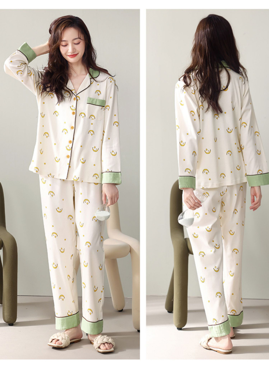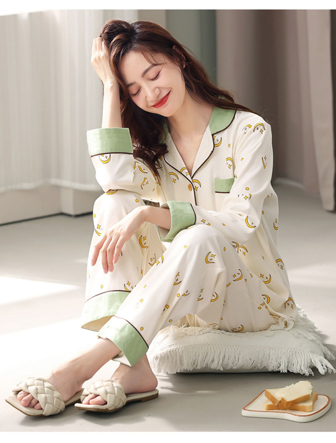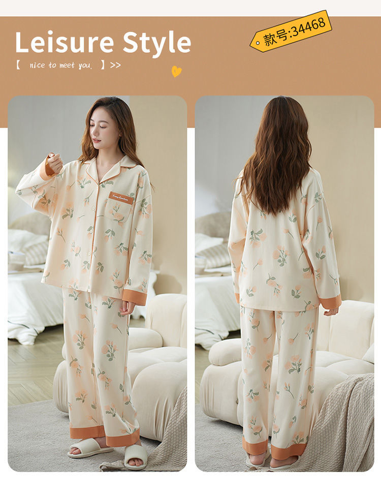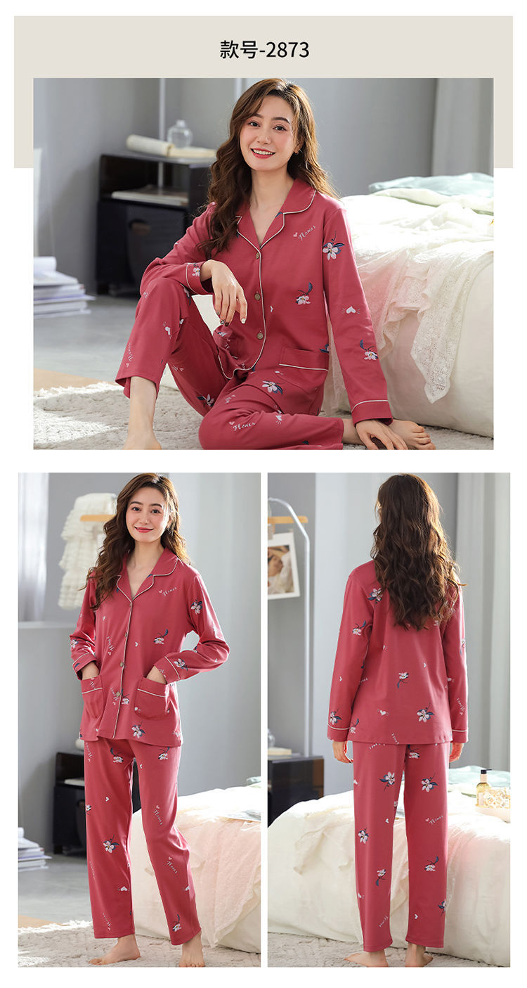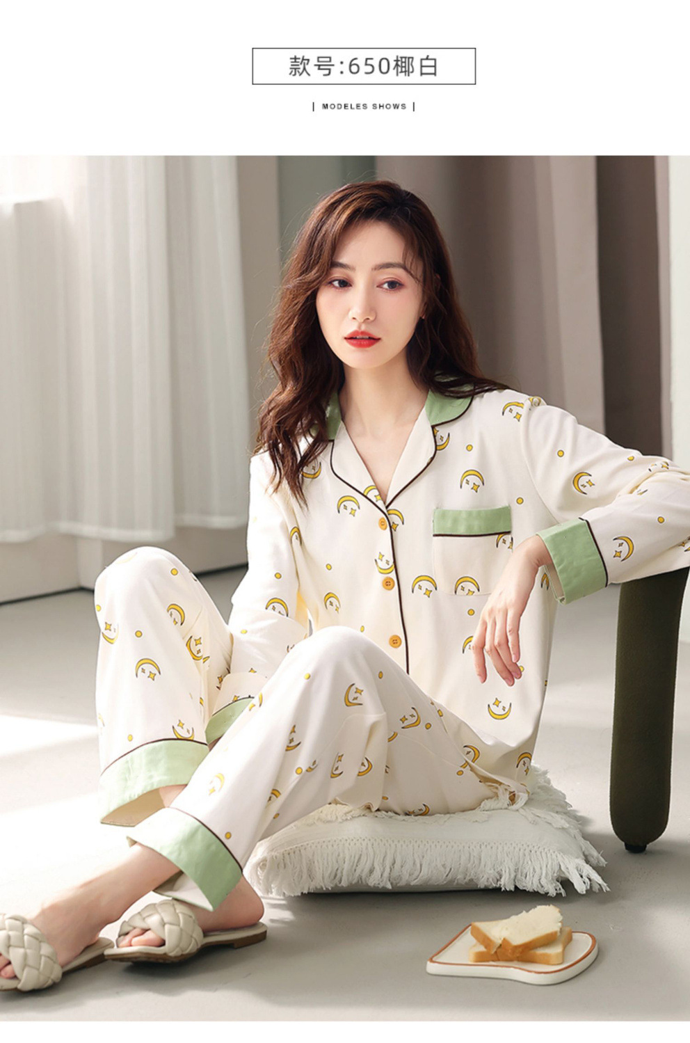 100% 순면 잠옷 여자의 봄과 가을 긴 소매 가디건 세트 캐주얼 가디건 문 옷 겨울과 여름스토어 가기