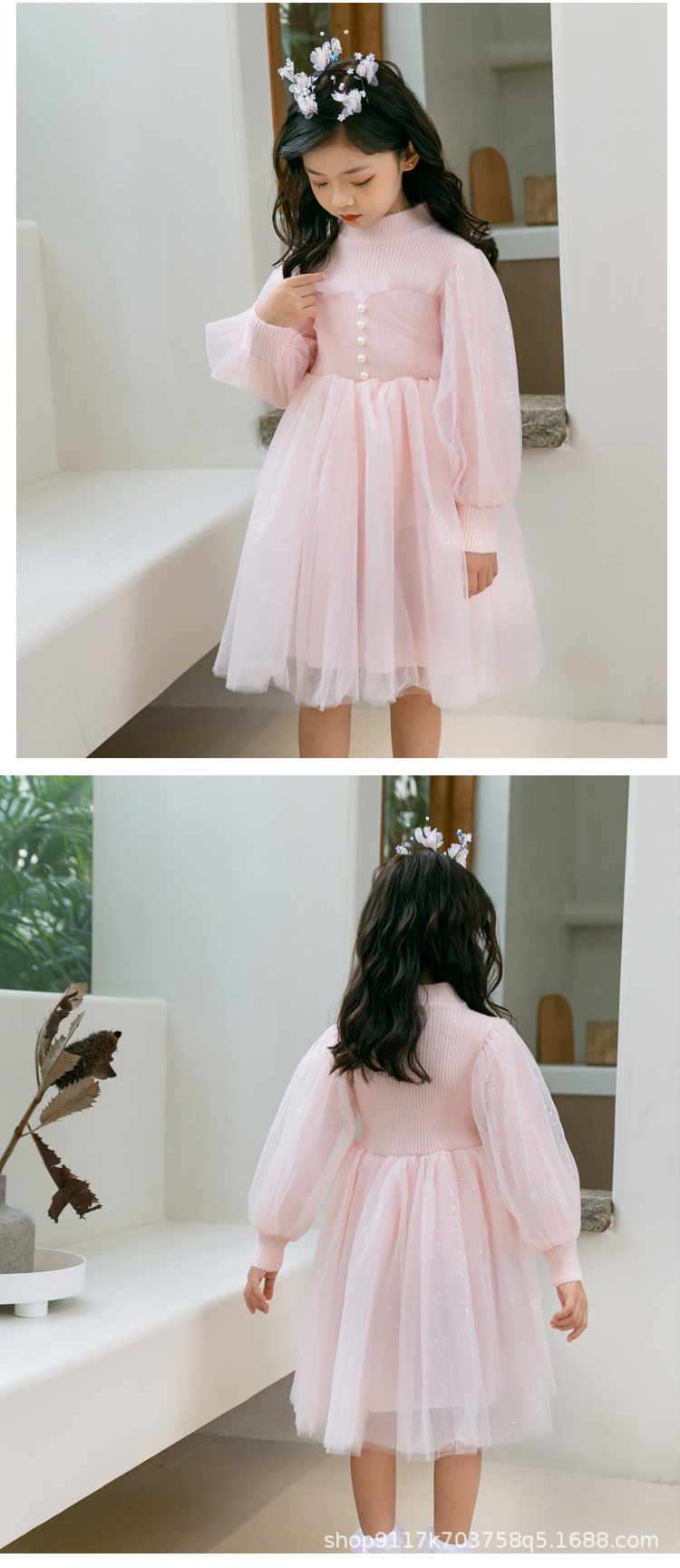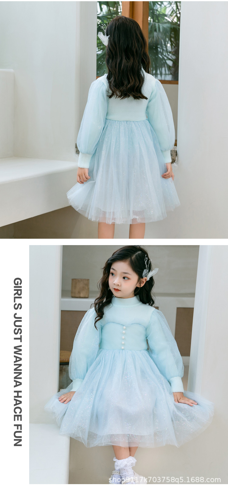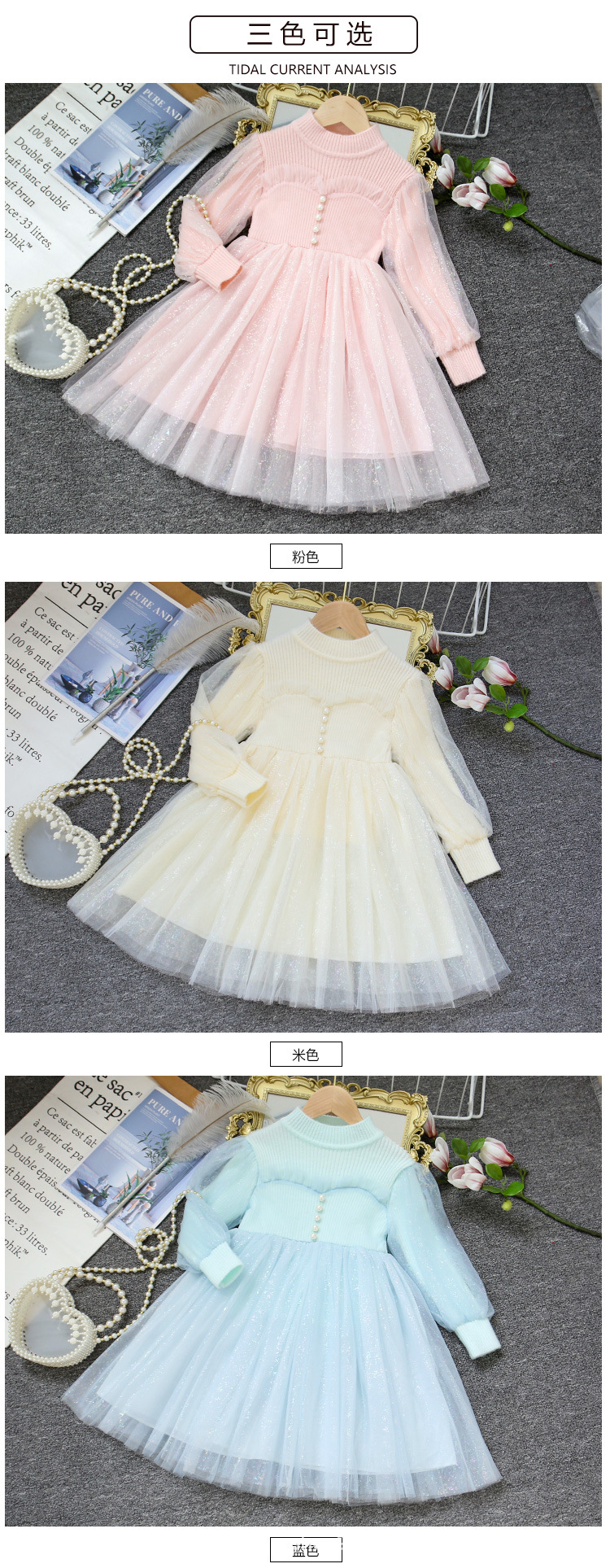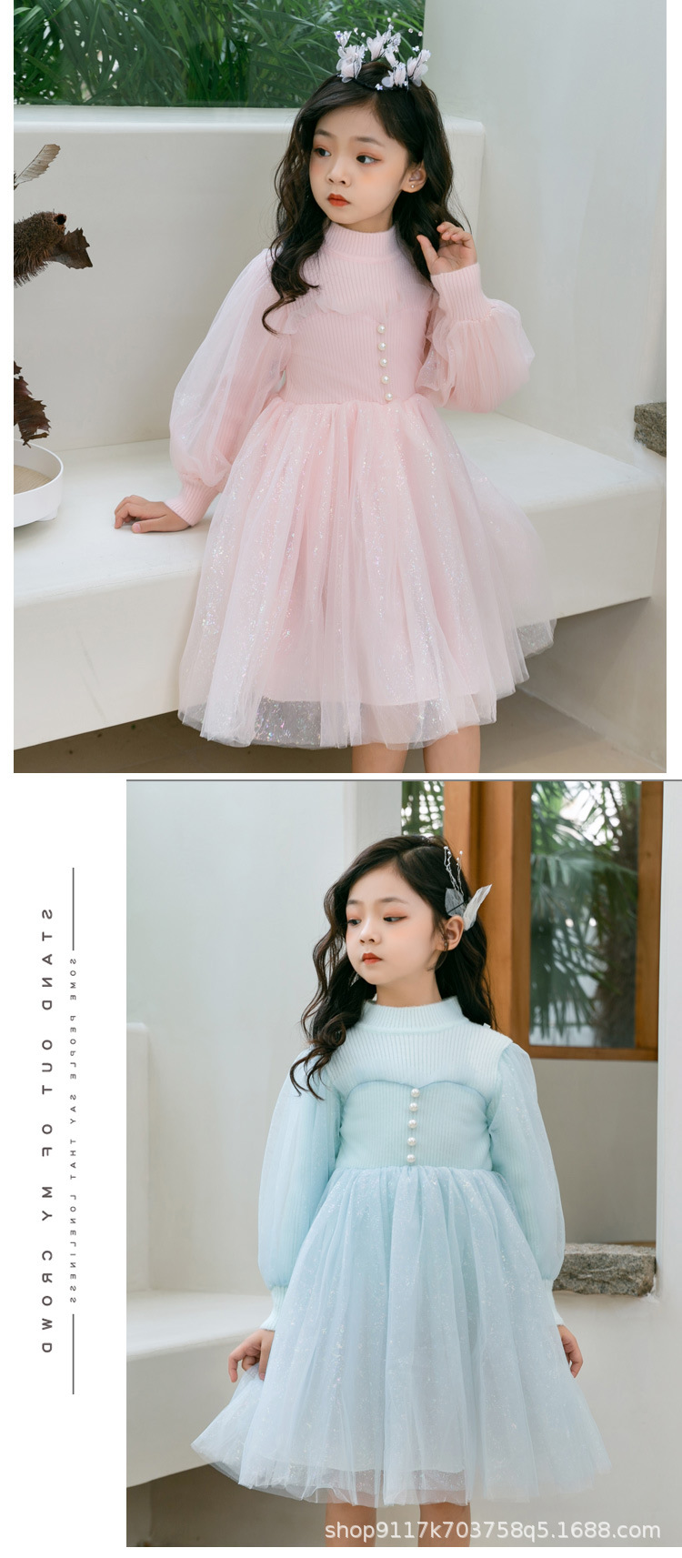 여아 공주 원피스 2023 가을과 겨울 니트 스티치 메쉬 원피스 세련된 여아 랜턴 슬리브 요정 원피스스토어 가기