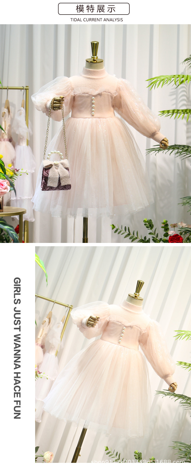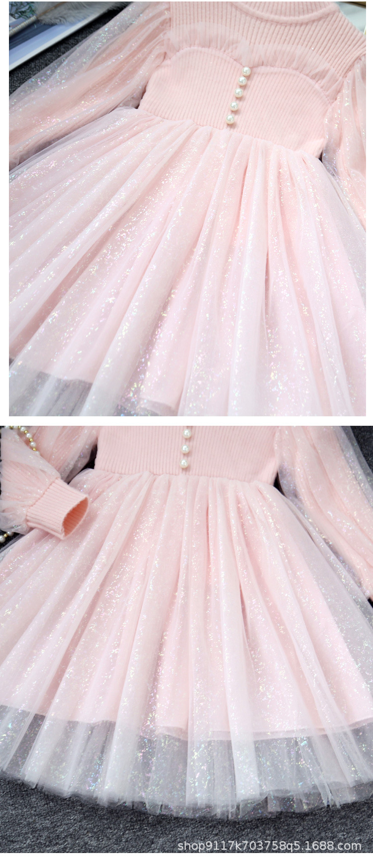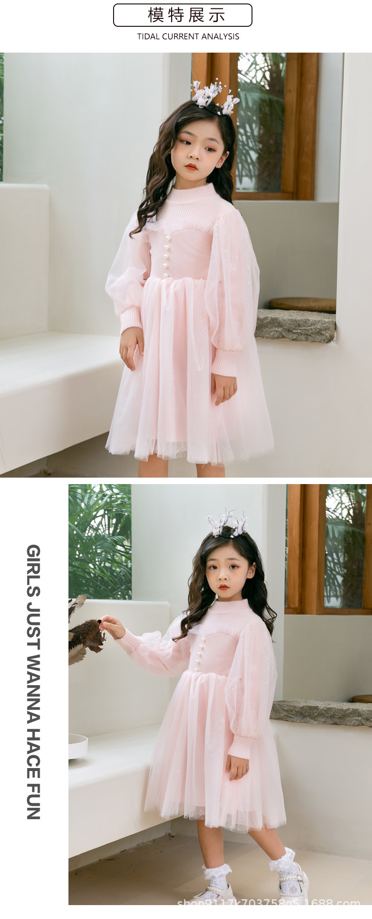 여아 공주 원피스 2023 가을과 겨울 니트 스티치 메쉬 원피스 세련된 여아 랜턴 슬리브 요정 원피스스토어 가기
