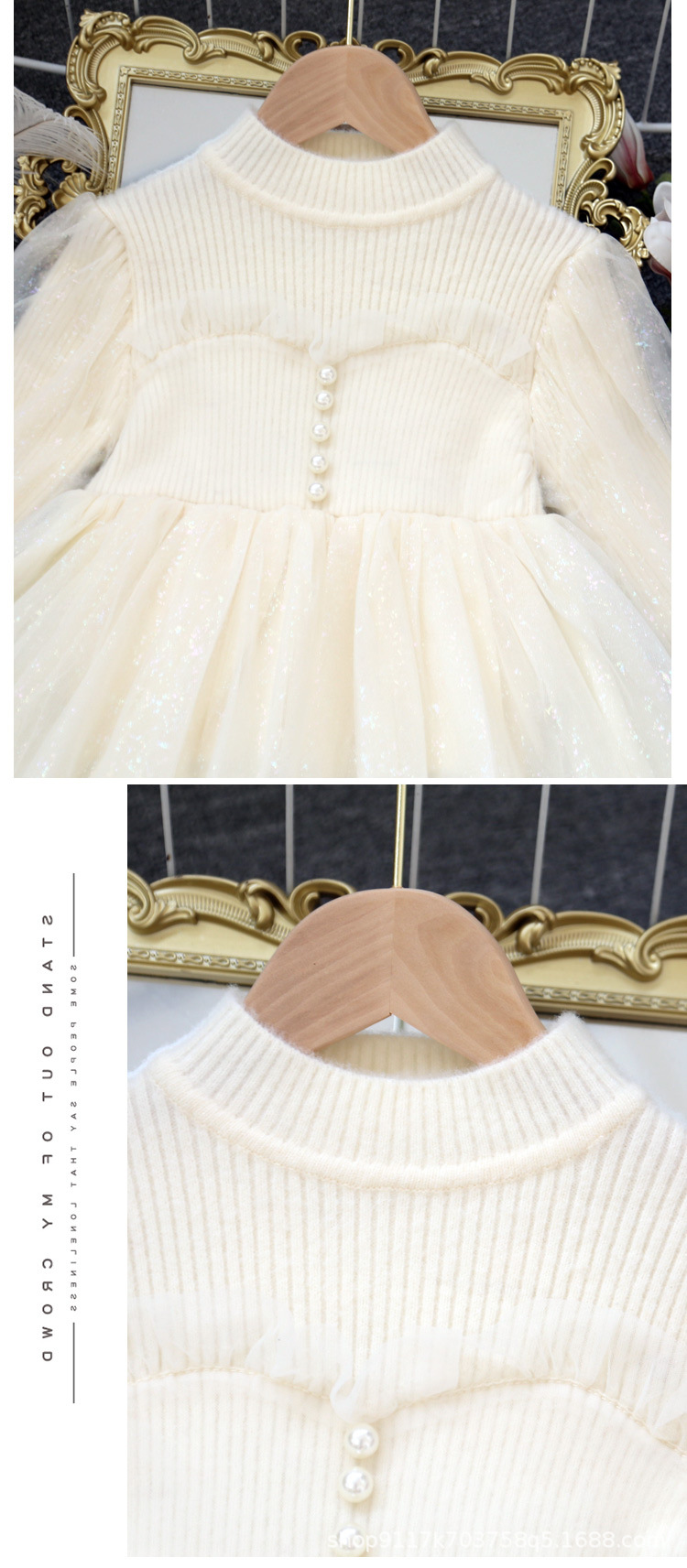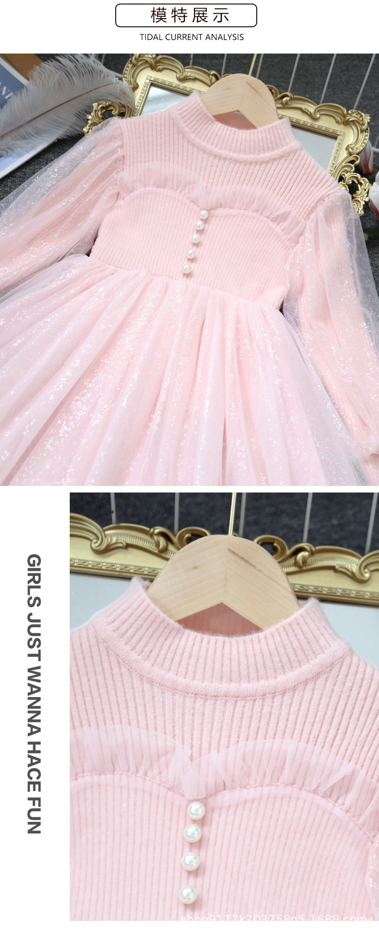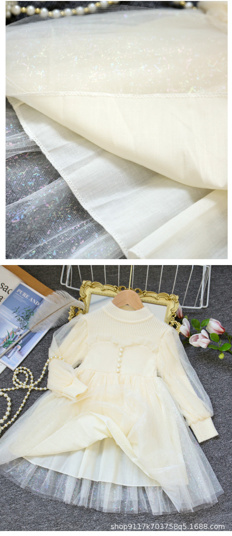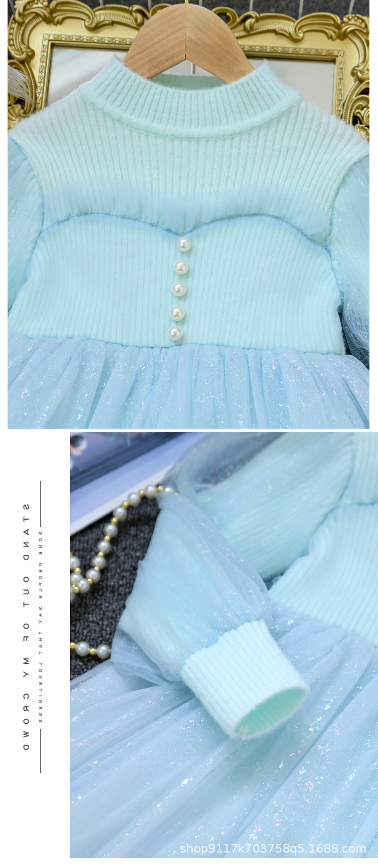 여아 공주 원피스 2023 가을과 겨울 니트 스티치 메쉬 원피스 세련된 여아 랜턴 슬리브 요정 원피스스토어 가기