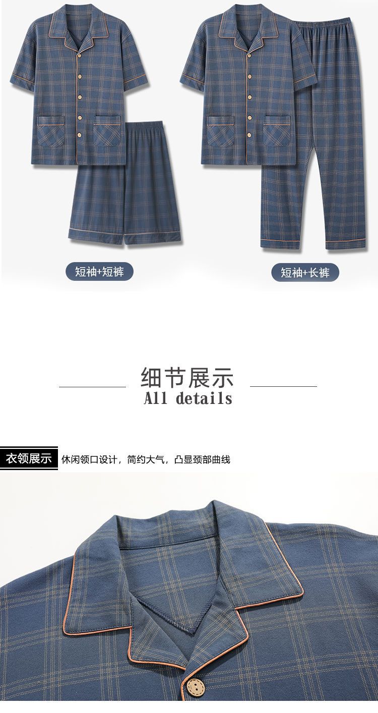 남자의 잠옷 여름 100% 면 반팔 바지 남자의 얇은 여름 플러스 사이즈 가정 의류 3 종 세트스토어 가기