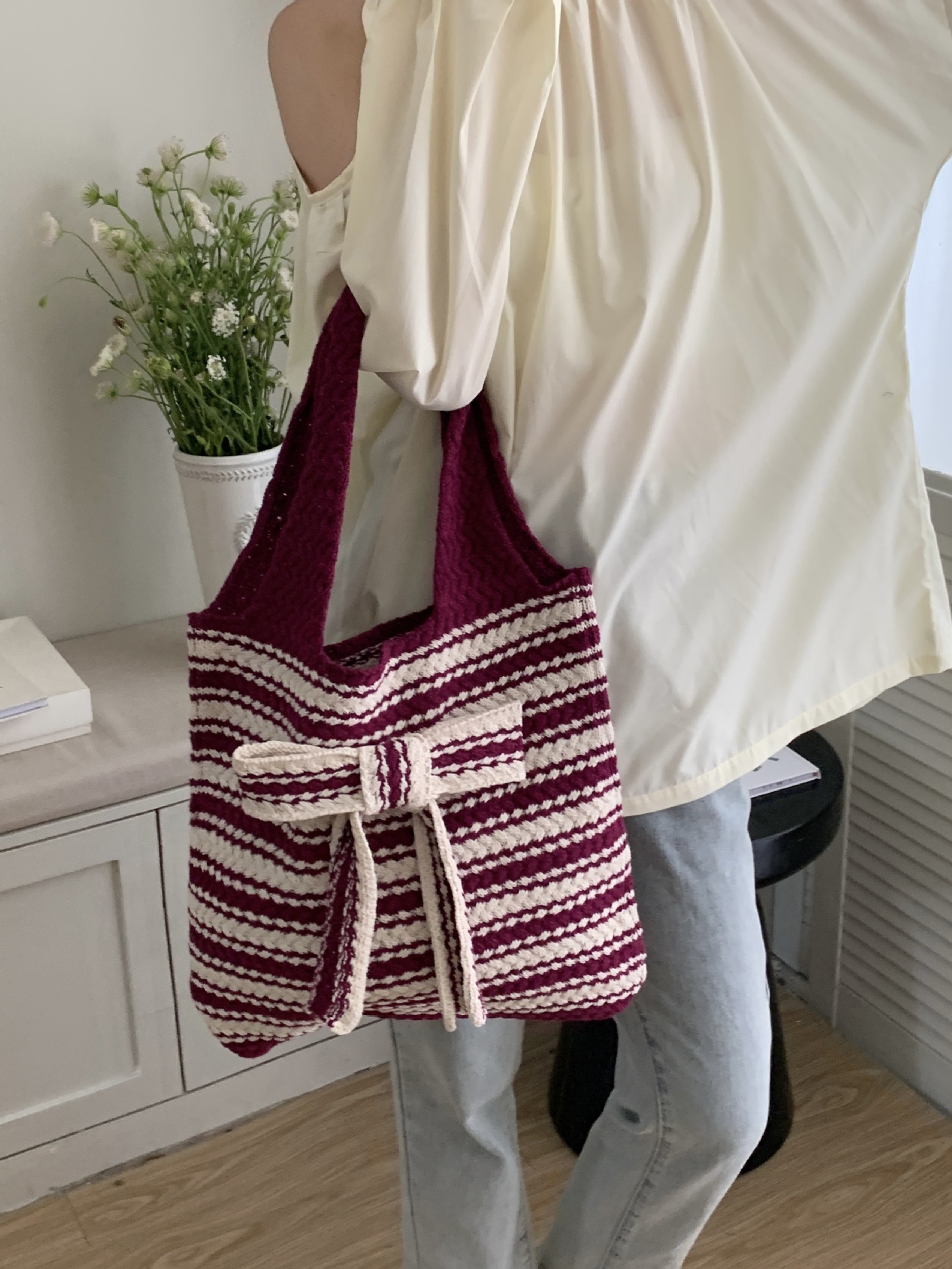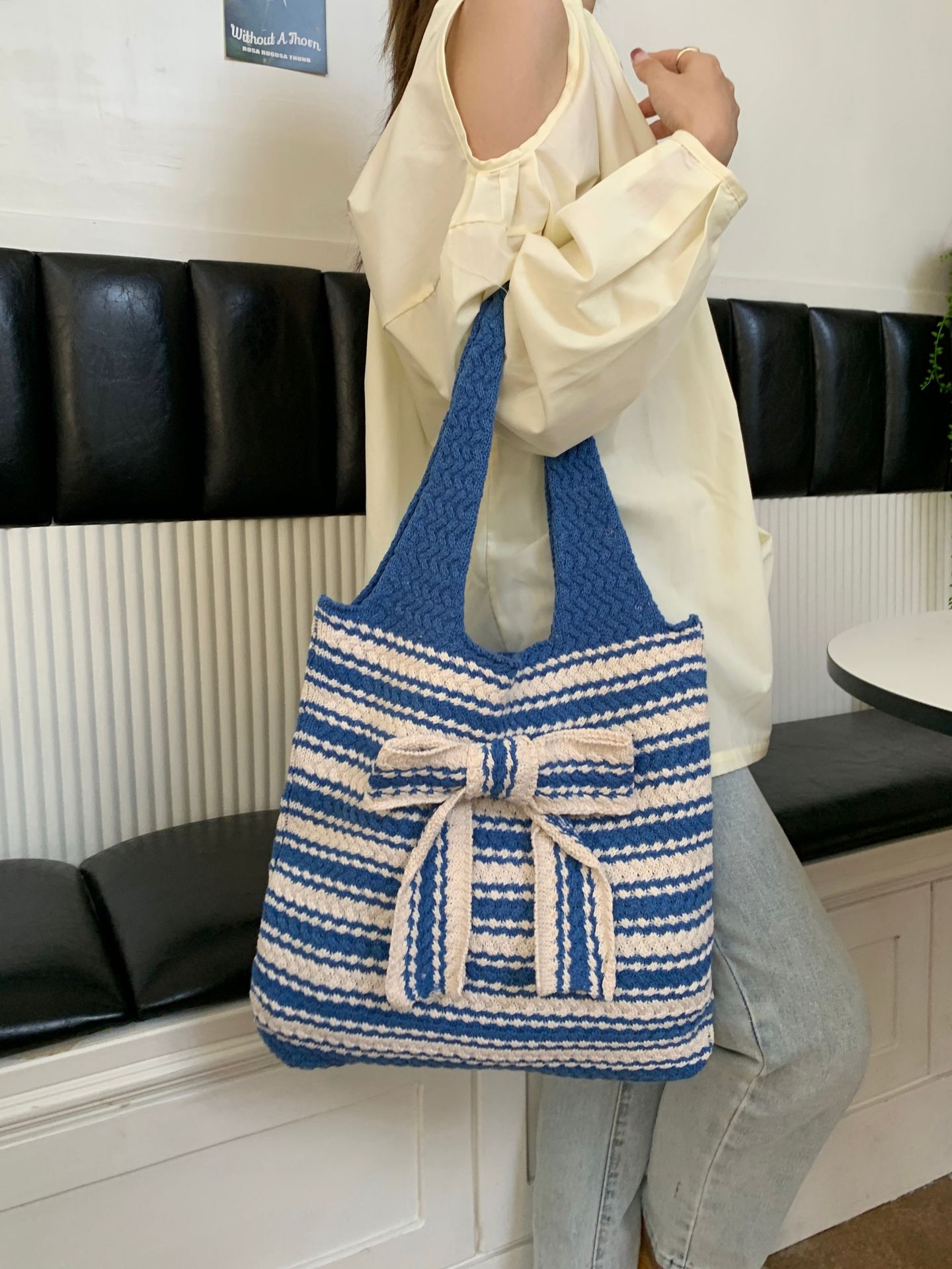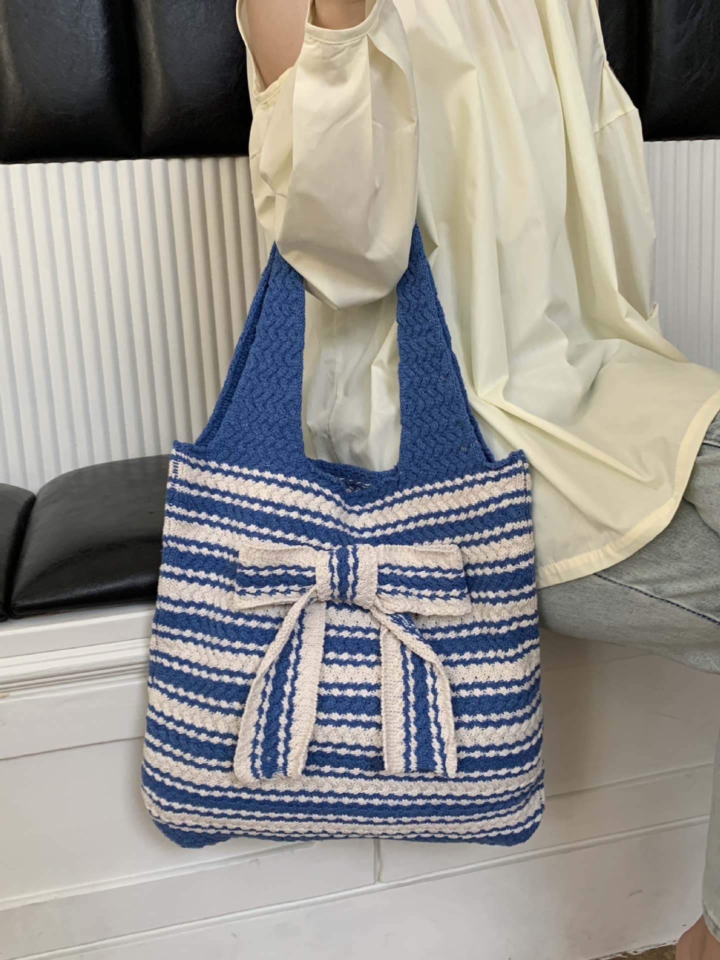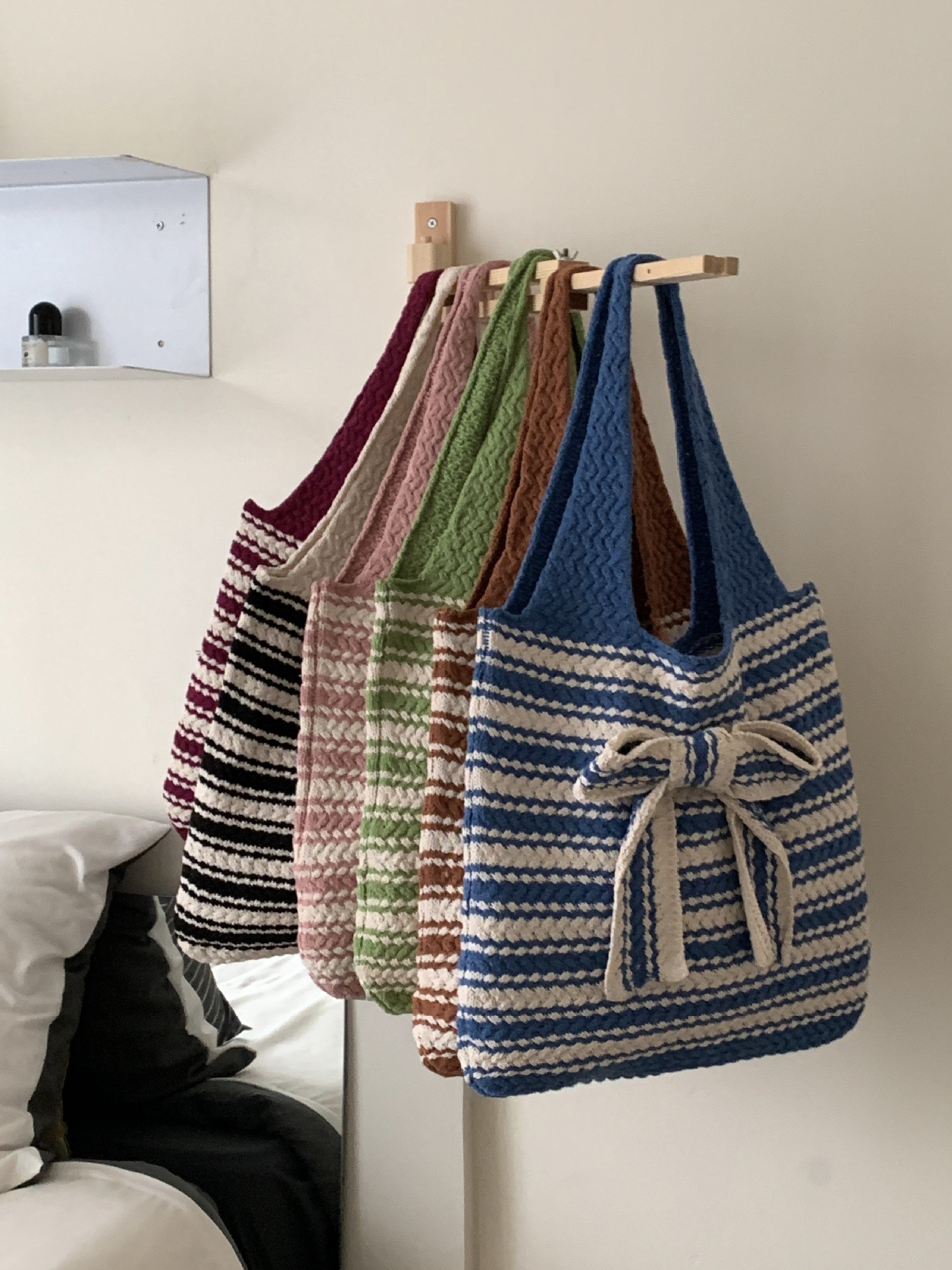 일본과 한국의 새로운 복고풍 니트 가방, 모직 니트 가방, 토트 백, 다용도 여성용 숄더백, 휴대용 쇼핑백스토어 가기