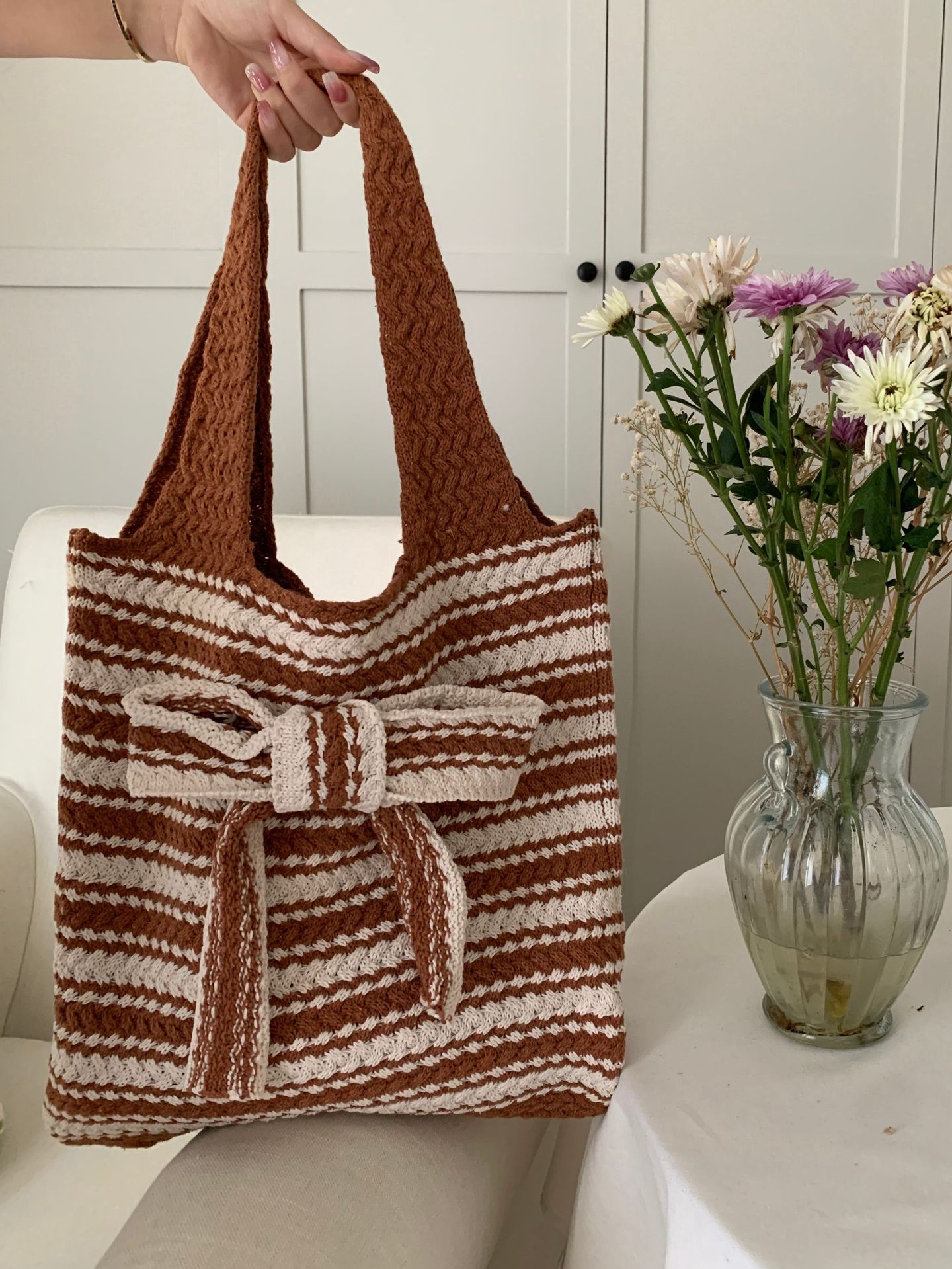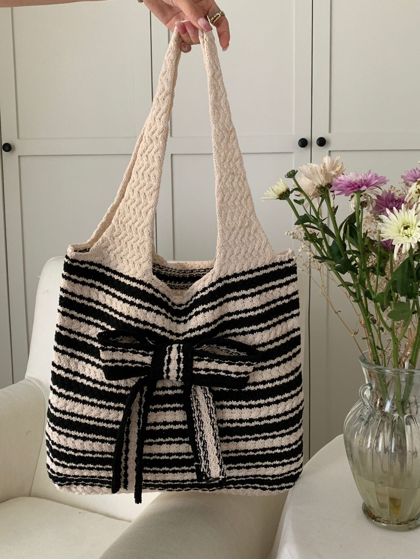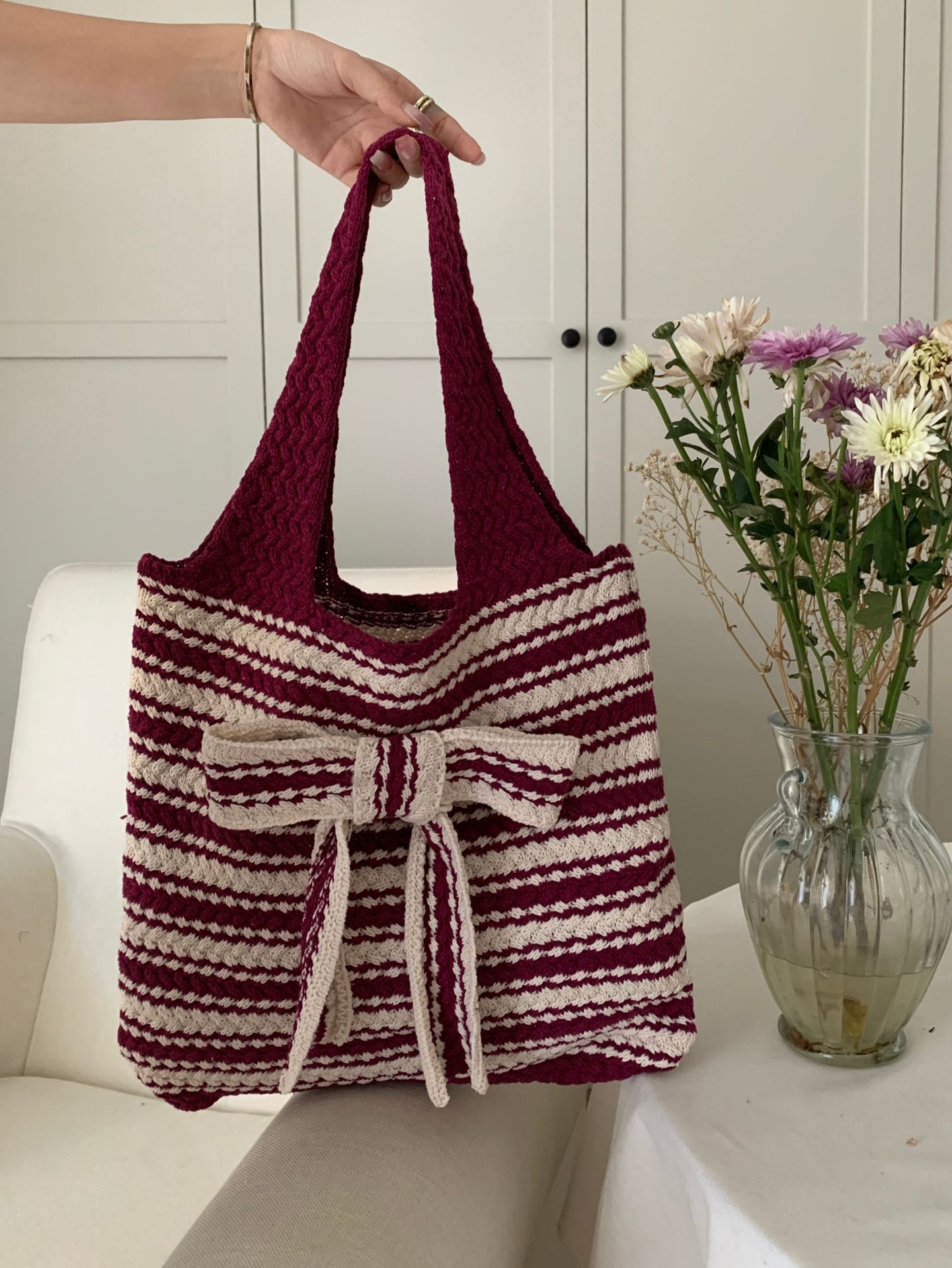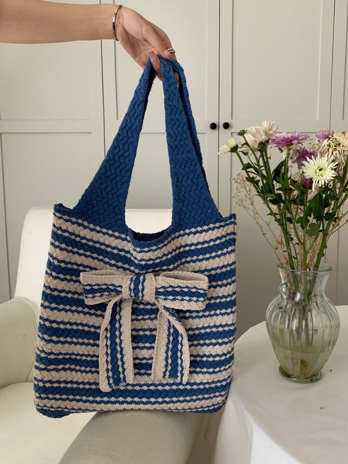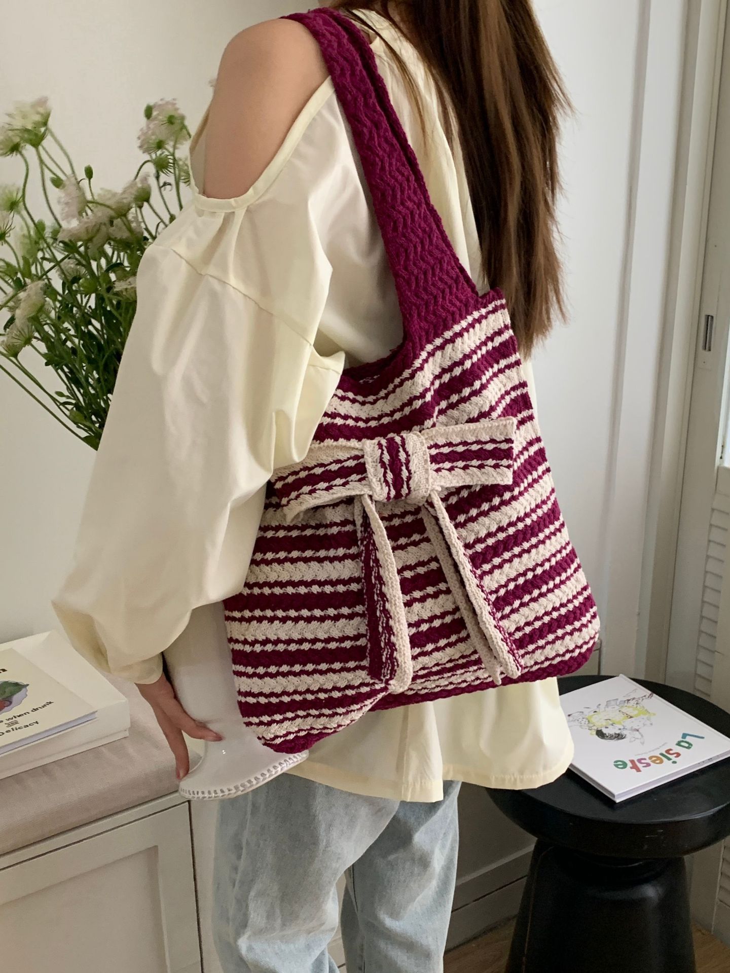 일본과 한국의 새로운 복고풍 니트 가방, 모직 니트 가방, 토트 백, 다용도 여성용 숄더백, 휴대용 쇼핑백스토어 가기