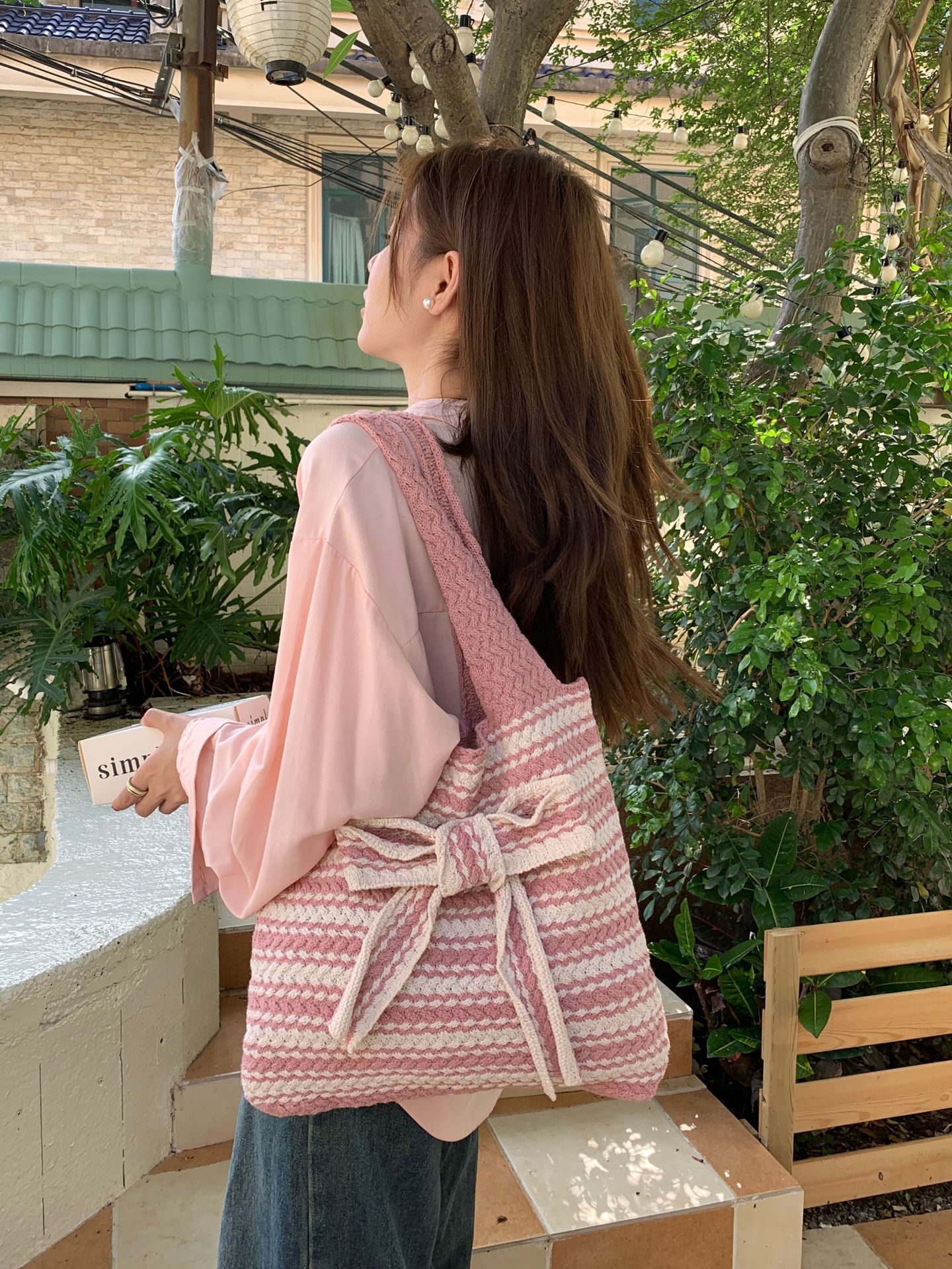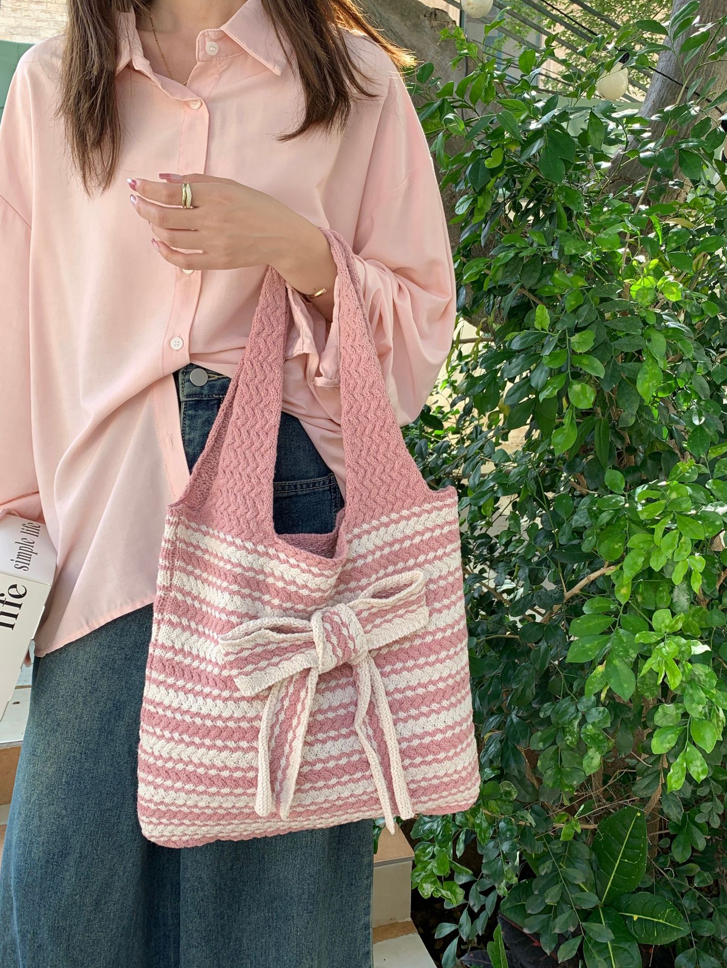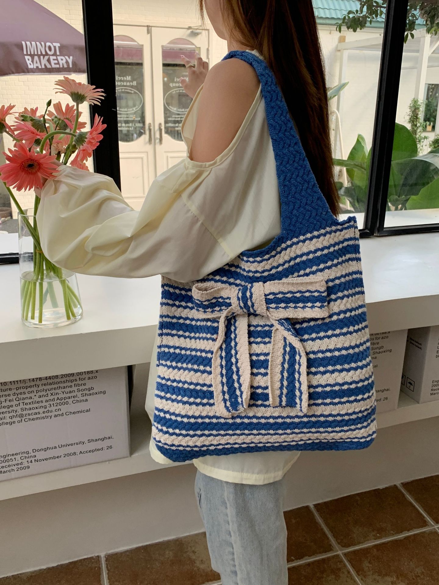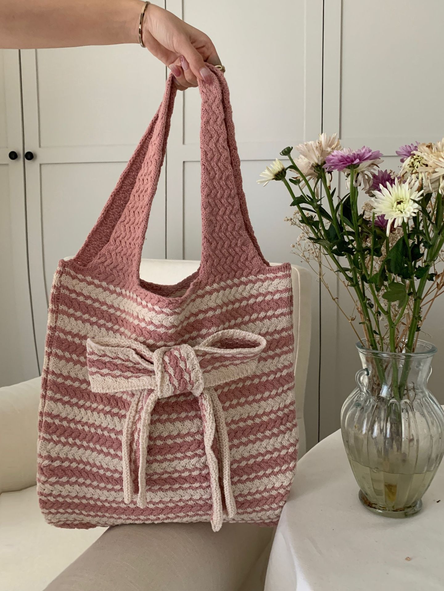 일본과 한국의 새로운 복고풍 니트 가방, 모직 니트 가방, 토트 백, 다용도 여성용 숄더백, 휴대용 쇼핑백스토어 가기