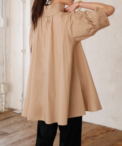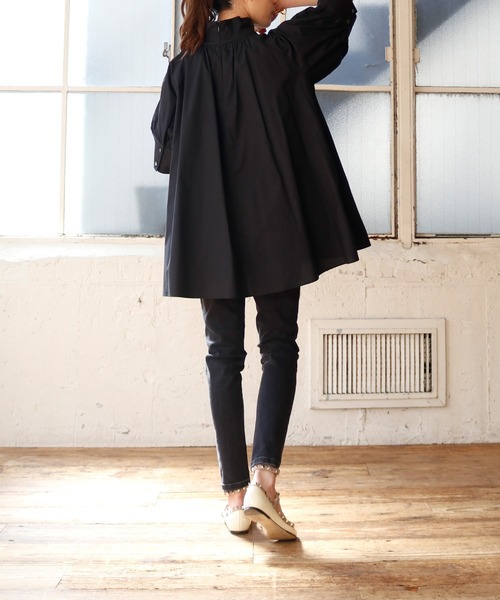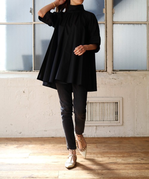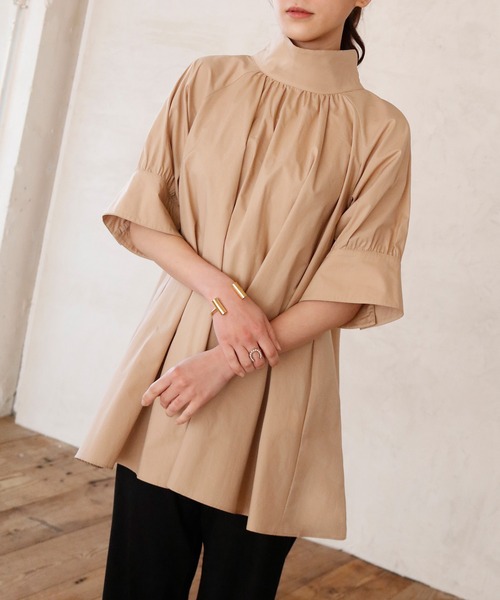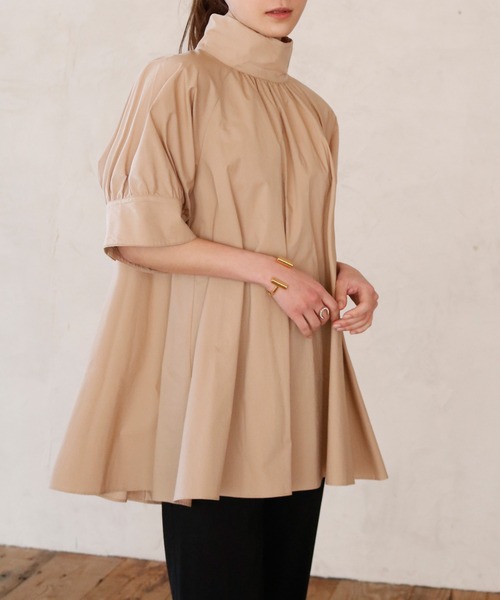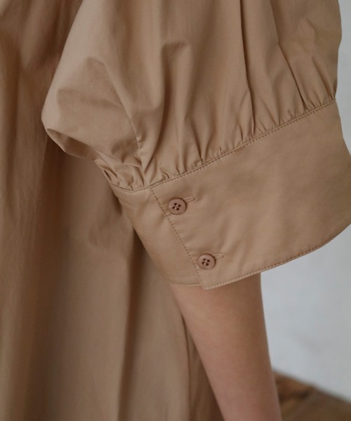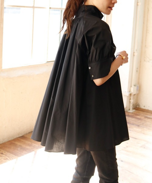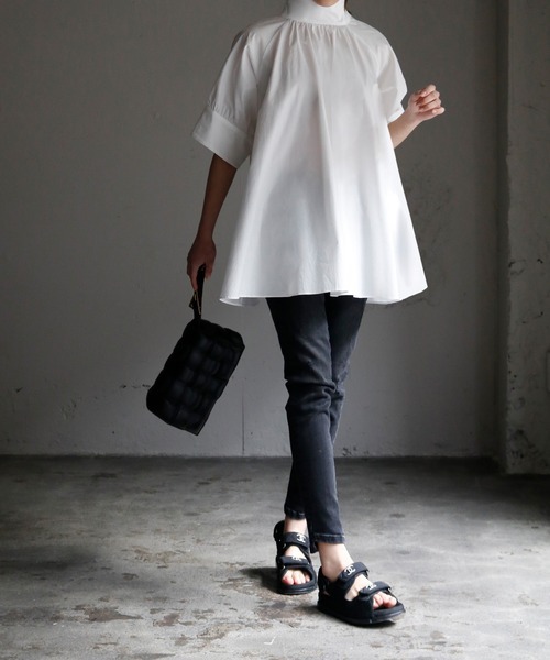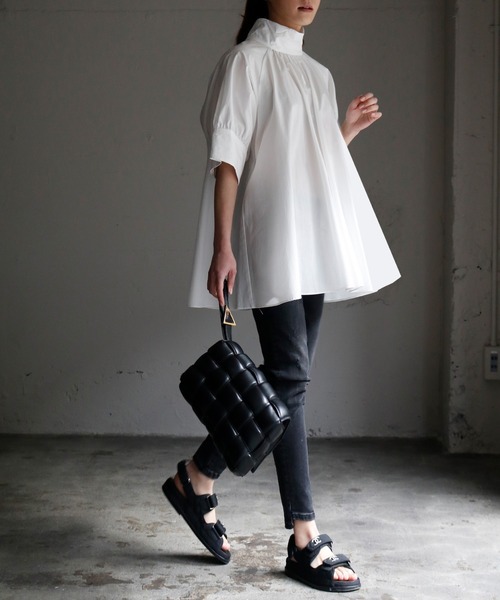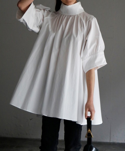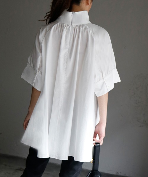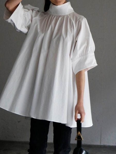 일본 2024 신작 반팔 흰색 루즈 퍼프 슬리브 스탠드 칼라 쇼트 셔츠스토어 가기