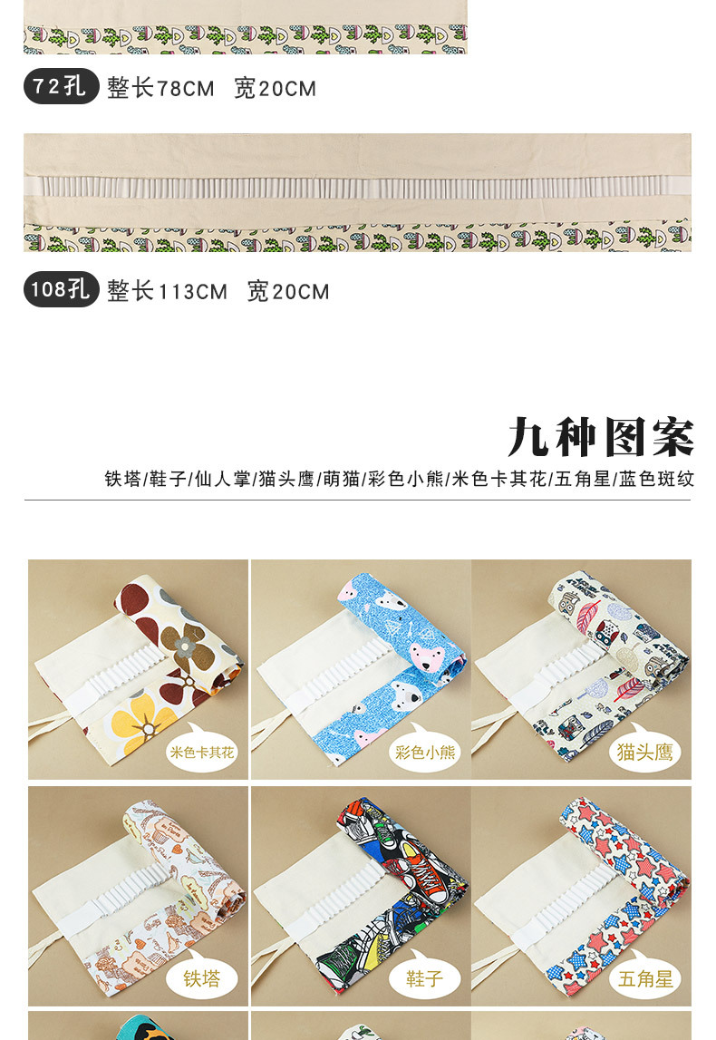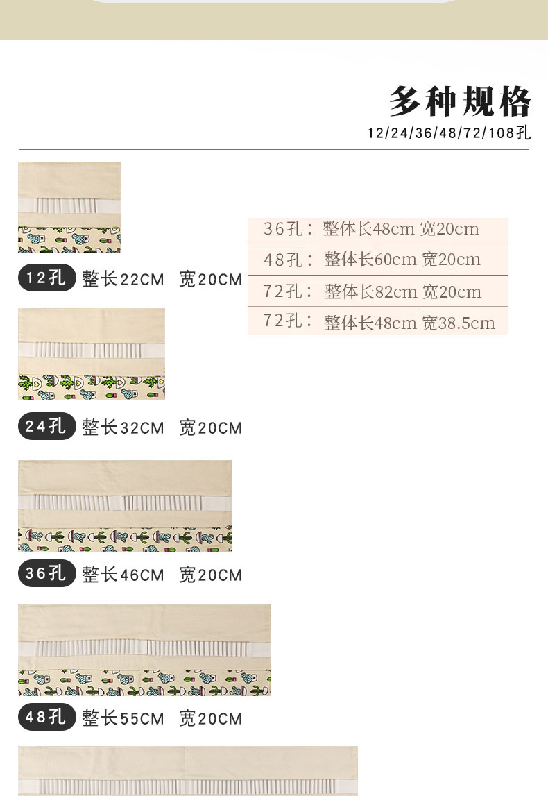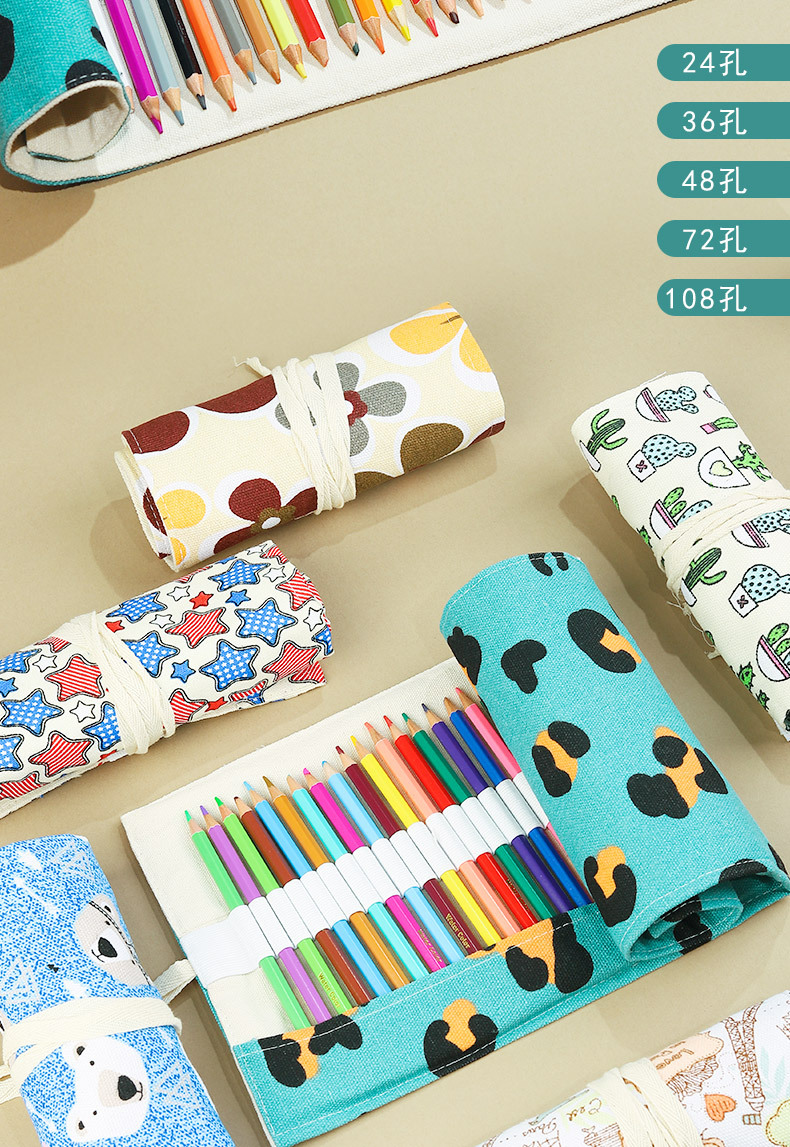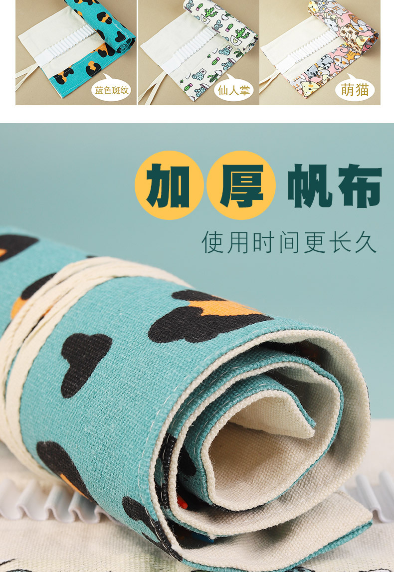 Weizhuang 캔버스 펜 커튼 72 홀 대용량 귀여운 고양이 만화 남성과 여성 연필 가방 캔버스 스케치 컬러 리드 페인팅 문구 가방스토어 가기