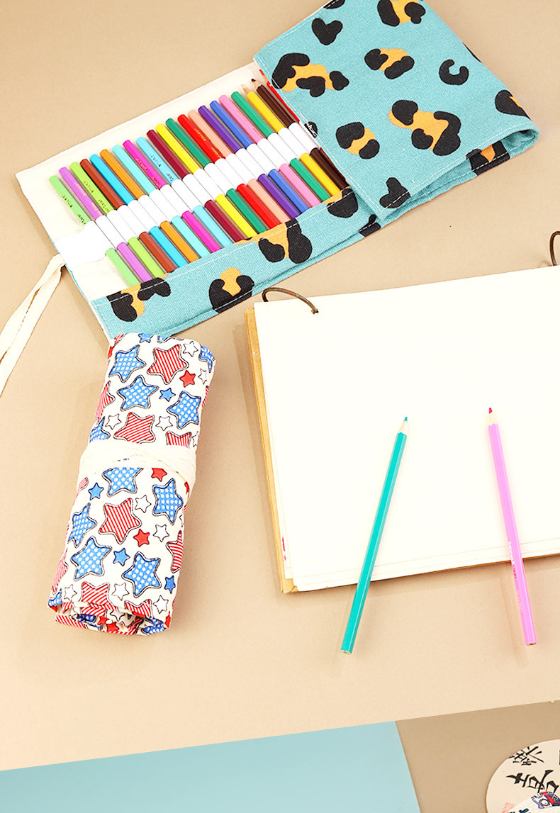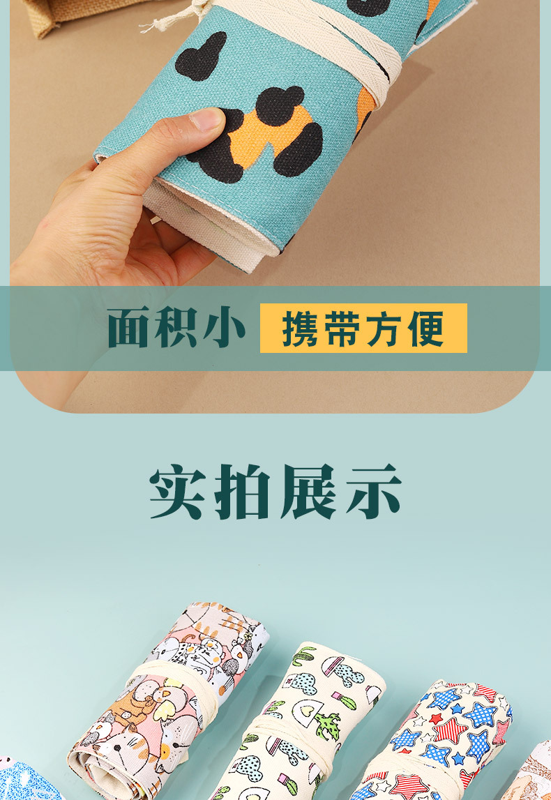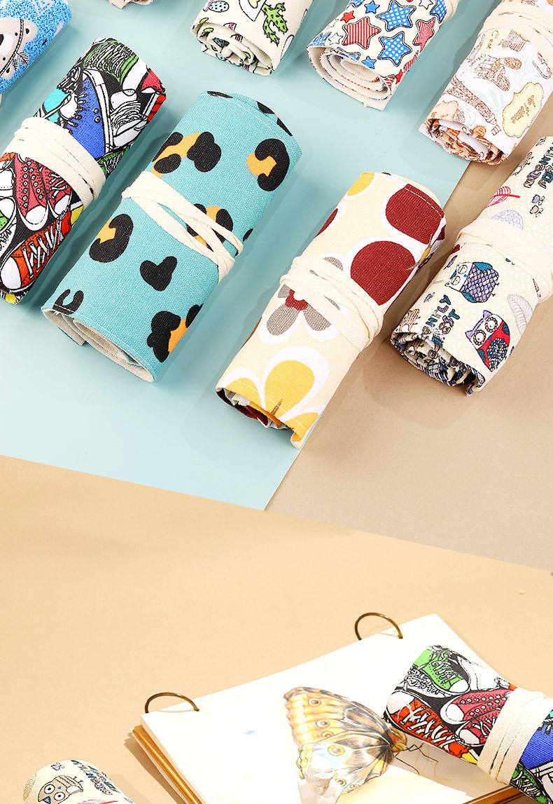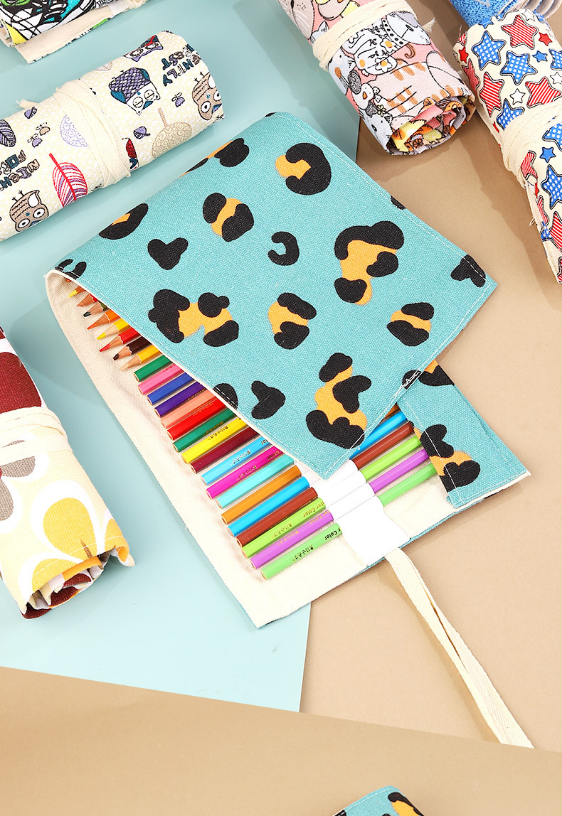 Weizhuang 캔버스 펜 커튼 72 홀 대용량 귀여운 고양이 만화 남성과 여성 연필 가방 캔버스 스케치 컬러 리드 페인팅 문구 가방스토어 가기