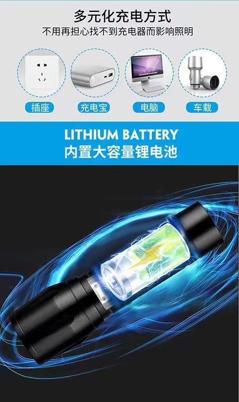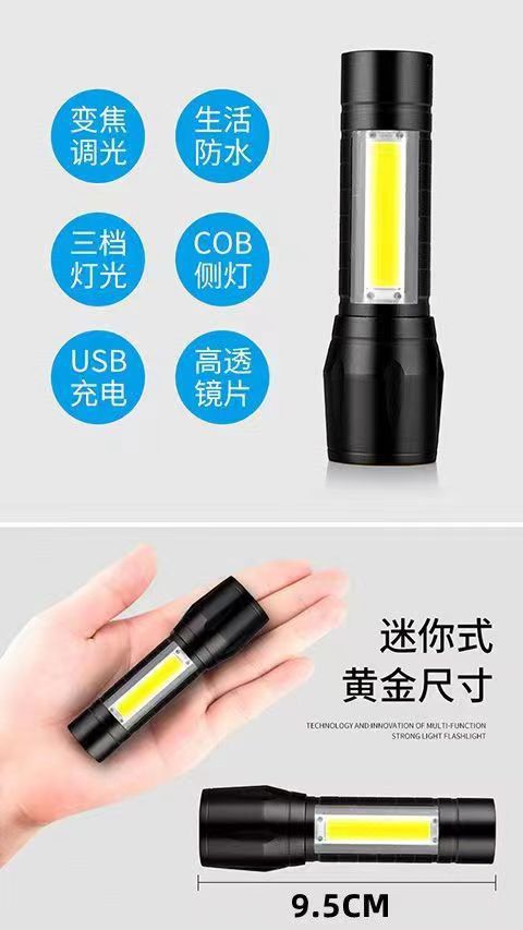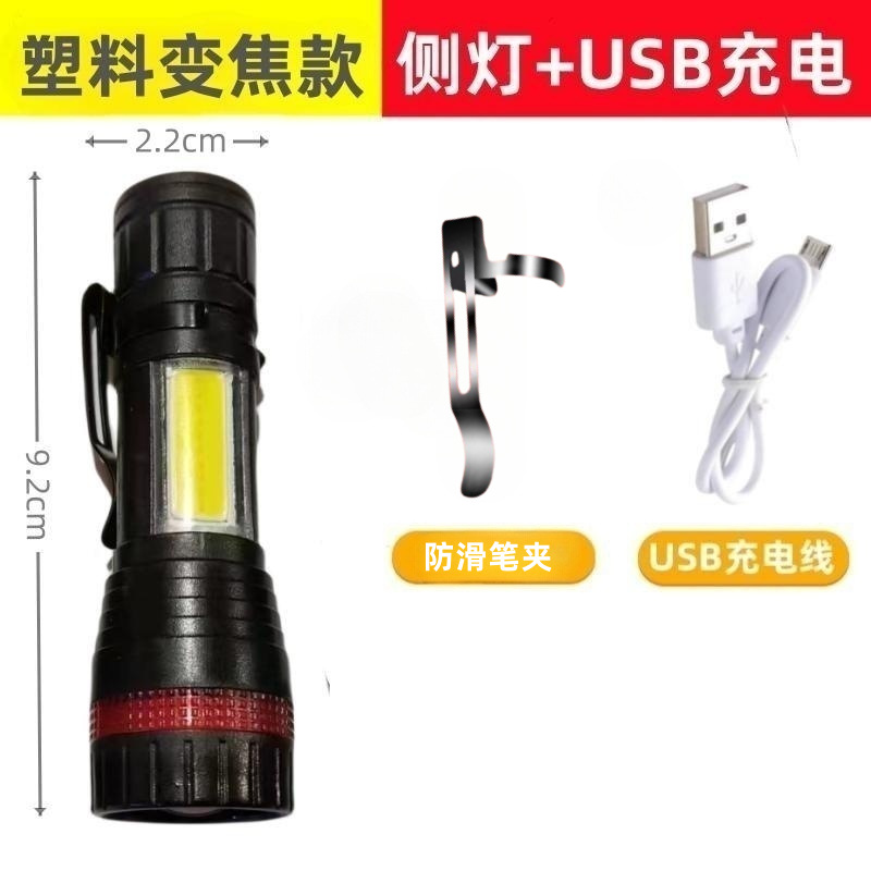 국경 간 충전 손전등 led 야외 줌 usb 작업 빛 개암 나무 미니 소형 손전등 제조 업체 도매스토어 가기