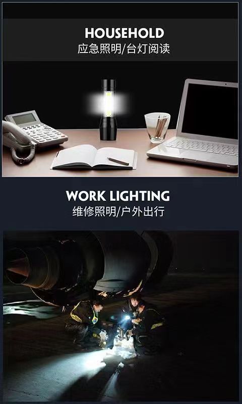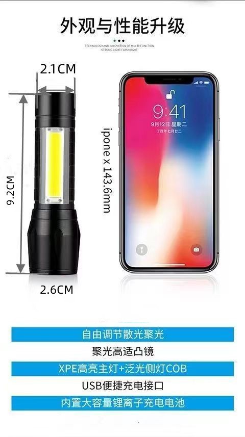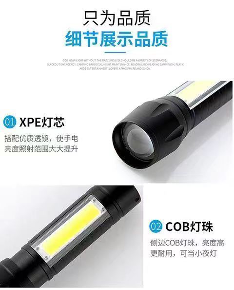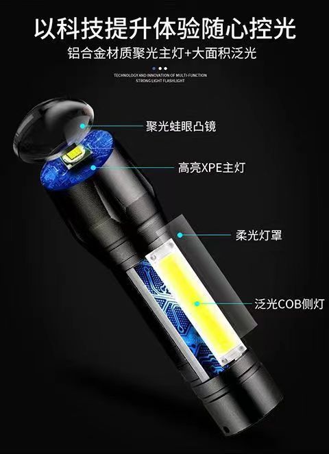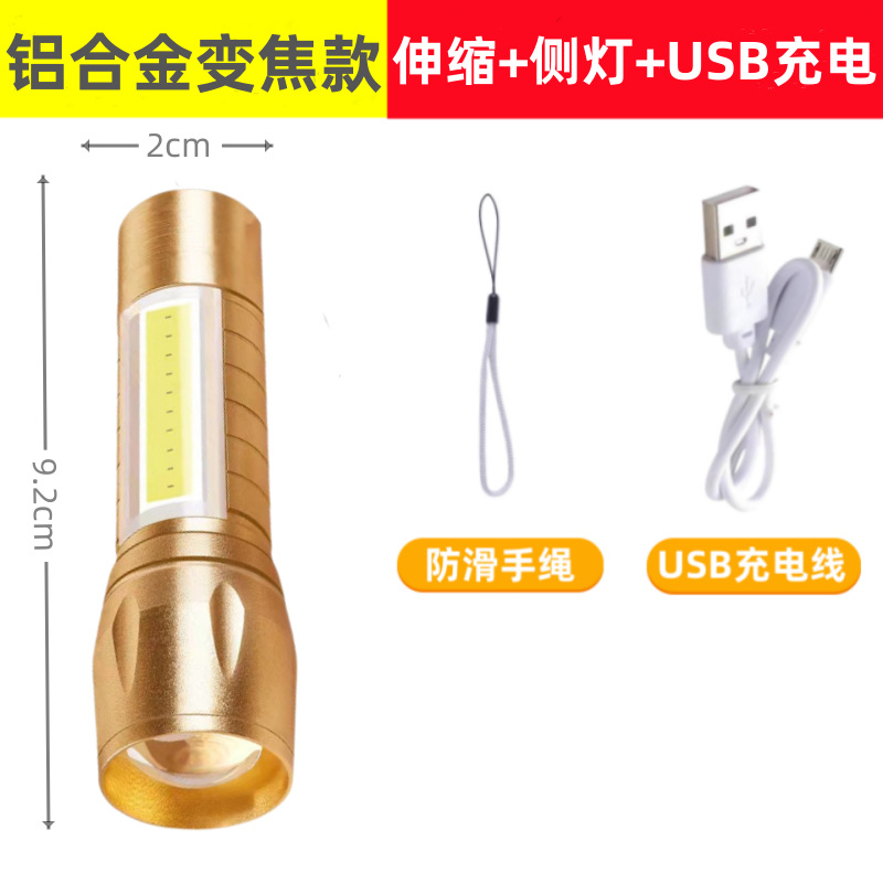 • 511 골드-알루미늄 합금 줌 사이드 라이트 + 핸드 로프 + USB 라인