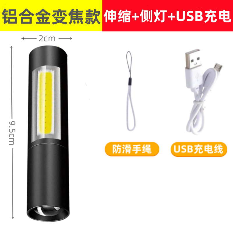 • 519B 실버-알루미늄 합금 줌 사이드 라이트 핸드 로프 USB 케이블
