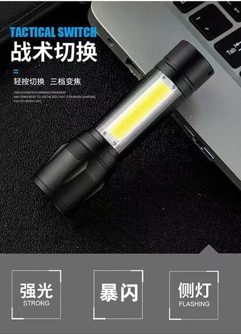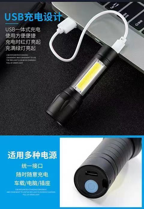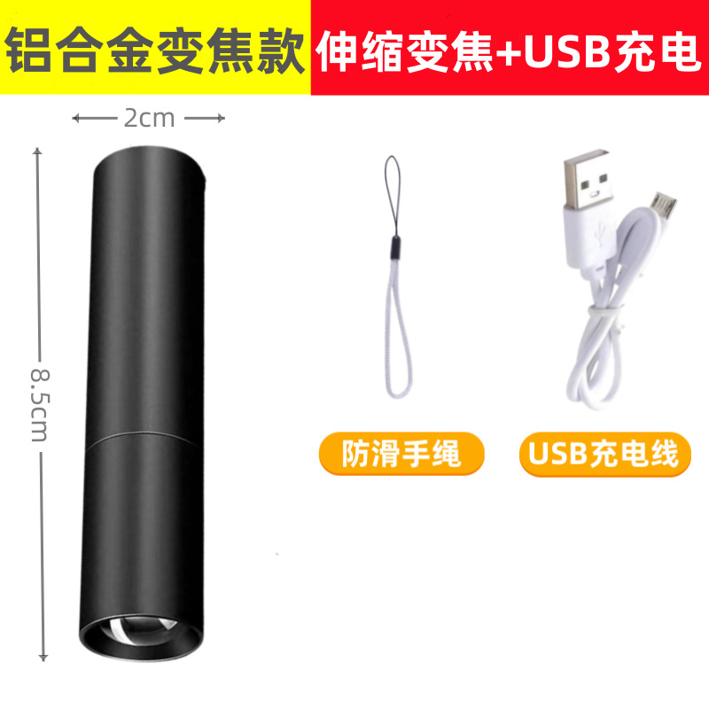 • 519B 블랙 알루미늄 합금 줌 사이드 라이트 핸드 로프 USB 케이블