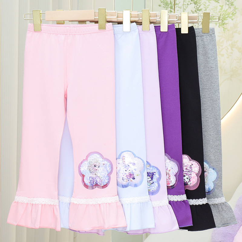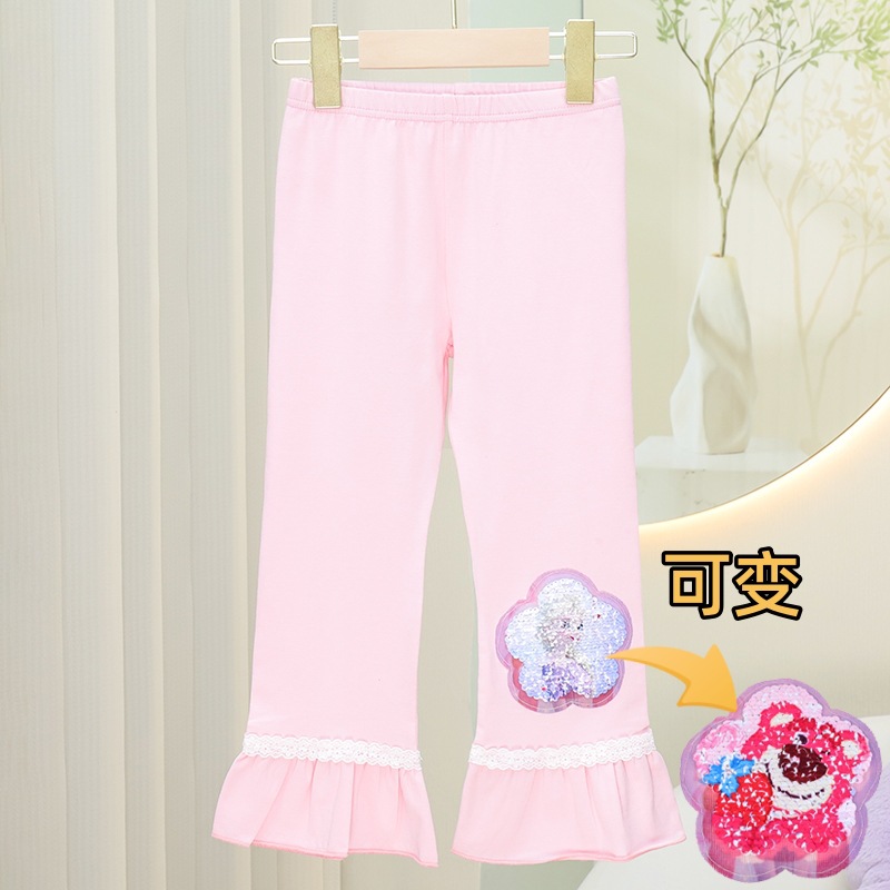 2024 새로운 봄과 가을 소녀 면화 레깅스 서양식 올 매치 바지 외부 착용 어린이 소녀 롱 존스 바지