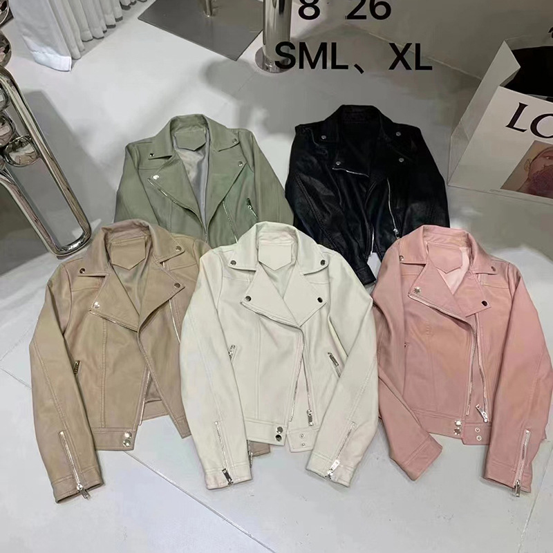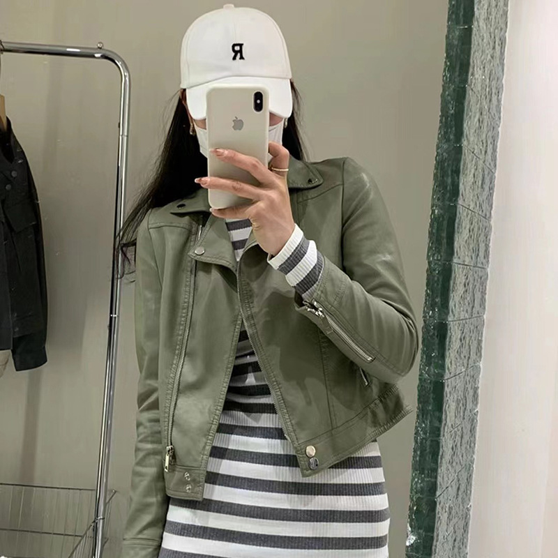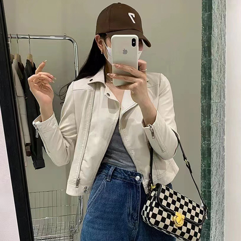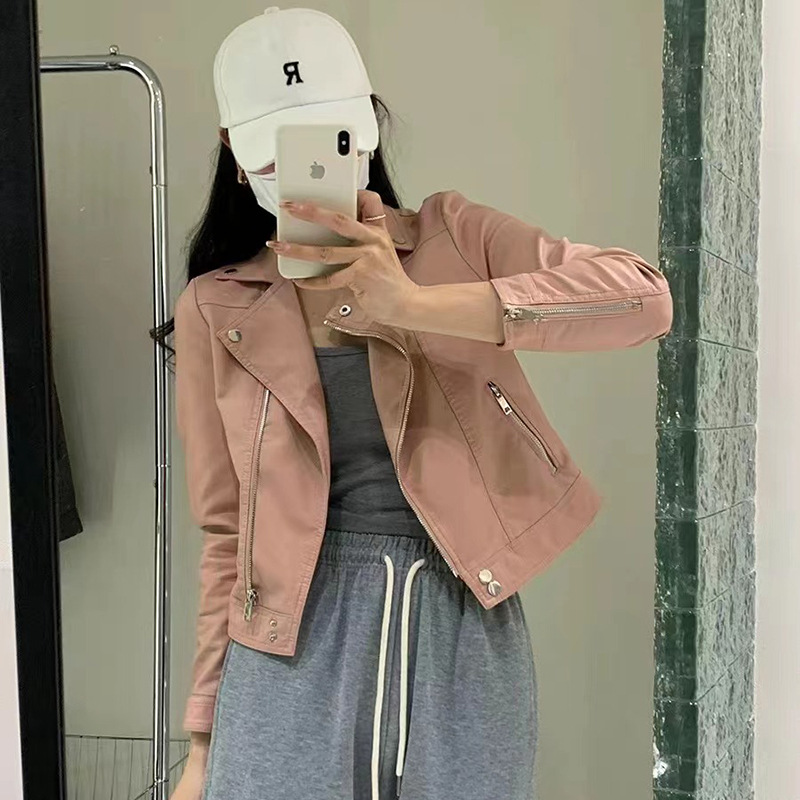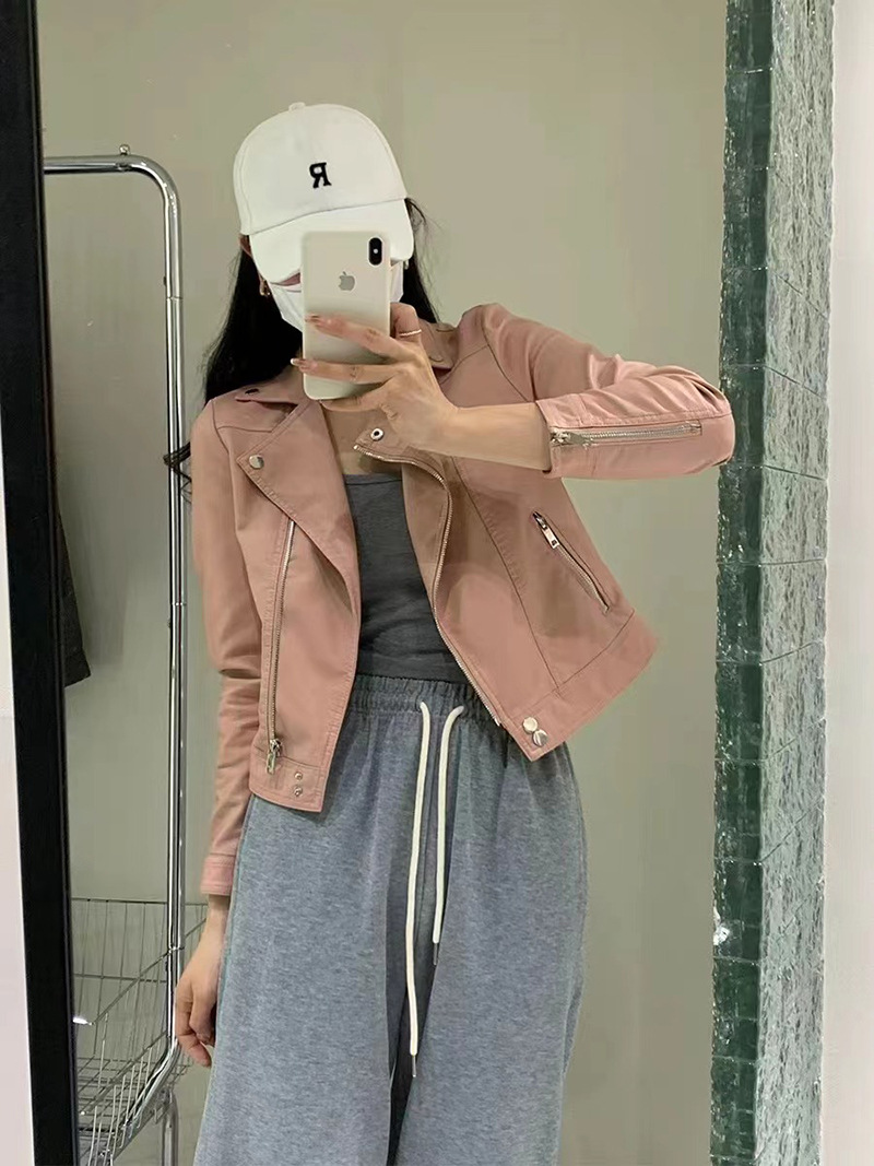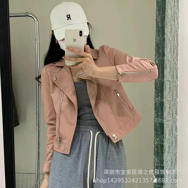2025 봄 디자인 감각적인 니치 스타일 지퍼 블랙 PU 가죽 롱 슬리브 자켓 바이커 숏 코트 여성용스토어 가기