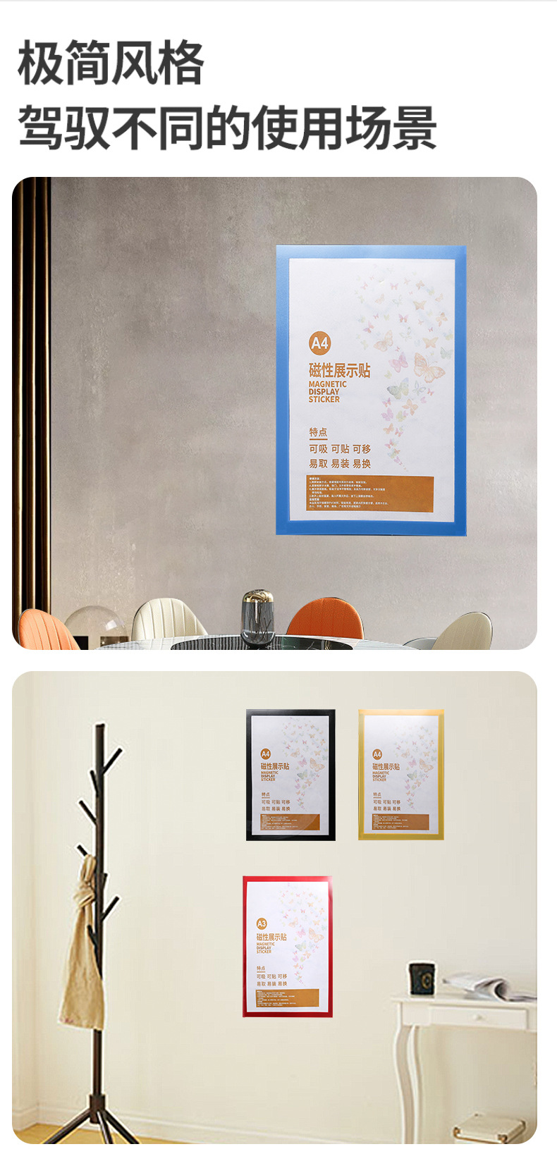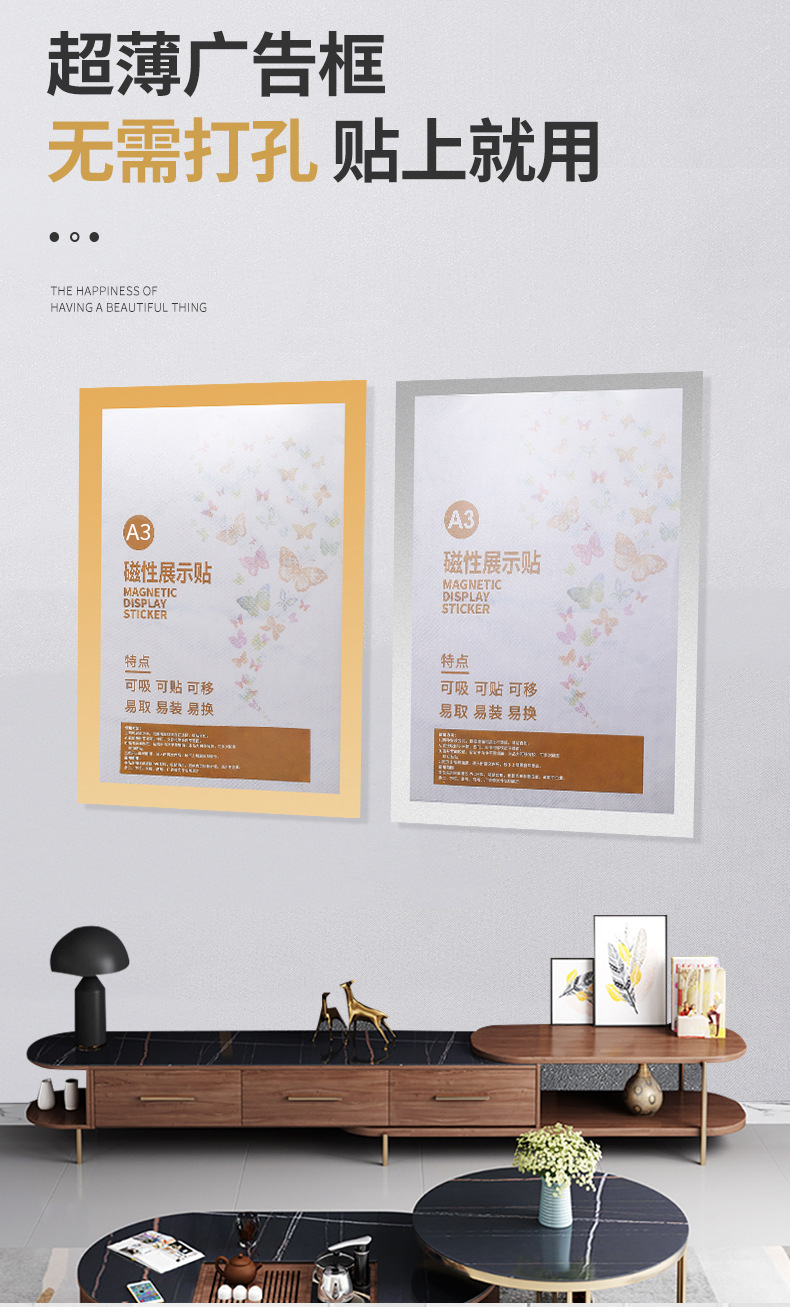마그네틱 디스플레이 벽걸이 비 천공 사진 프레임 사진 프레임 인증서 보호 커버 사업 라이센스 프레임 A3 포지티브 및 중복 도매스토어 가기