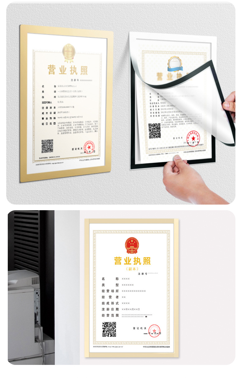 마그네틱 디스플레이 벽걸이 비 천공 사진 프레임 사진 프레임 인증서 보호 커버 사업 라이센스 프레임 A3 포지티브 및 중복 도매
