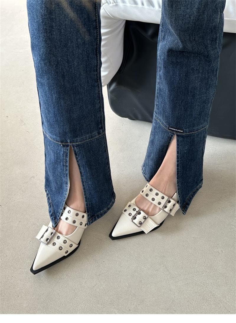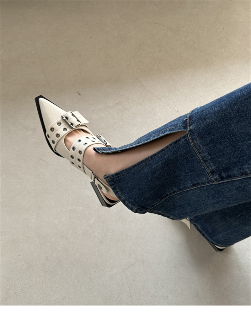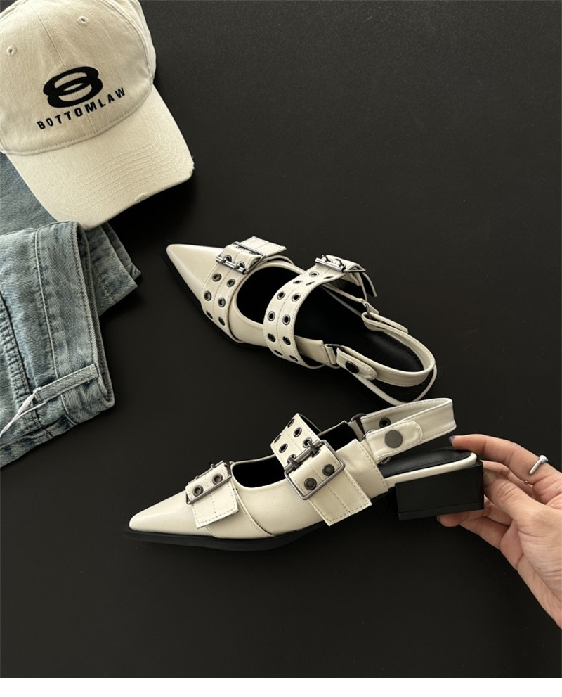 프랑스 스타일 지적 발가락 메리 제인 신발 복고풍 중간 두꺼운 뒤꿈치 단일 신발 여성 2025 봄과 여름 스커트 작은 가죽 신발스토어 가기