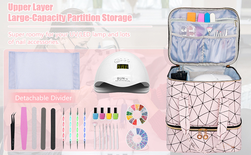 매니큐어 보관 가방 네일 아트 휴대용 더블 레이어 높이 대용량 에센셜 오일 가방 브래킷 램프 30 병을 수용 할 수 있습니다