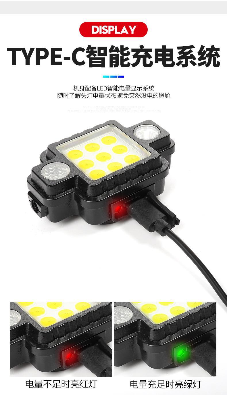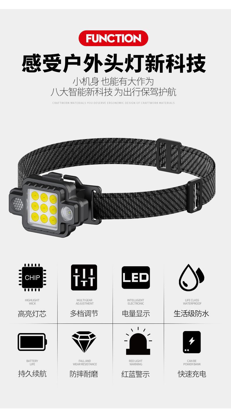 국경을 넘는 신형 COB 강광 헤드램프 USB 충전 야간 낚시 야간 라이딩 캠핑 작업등 다기능 자석식 야외등